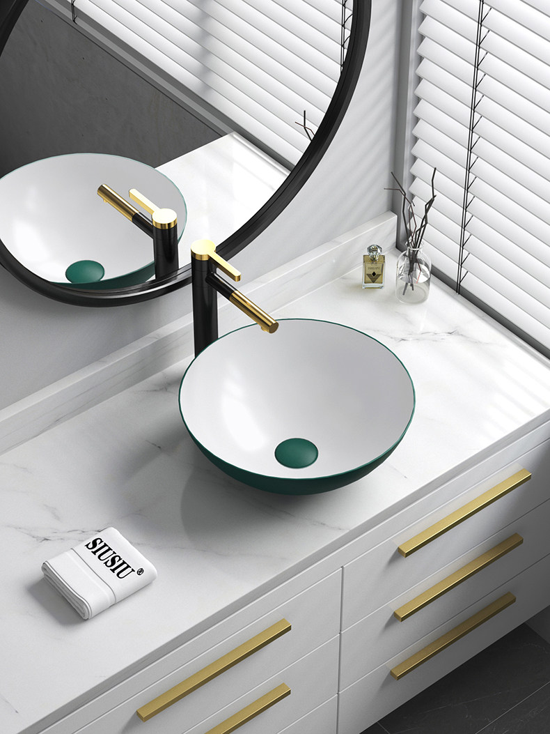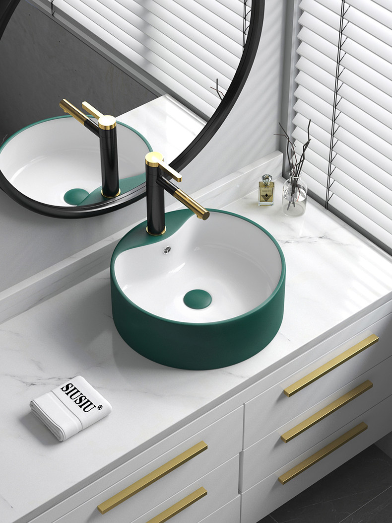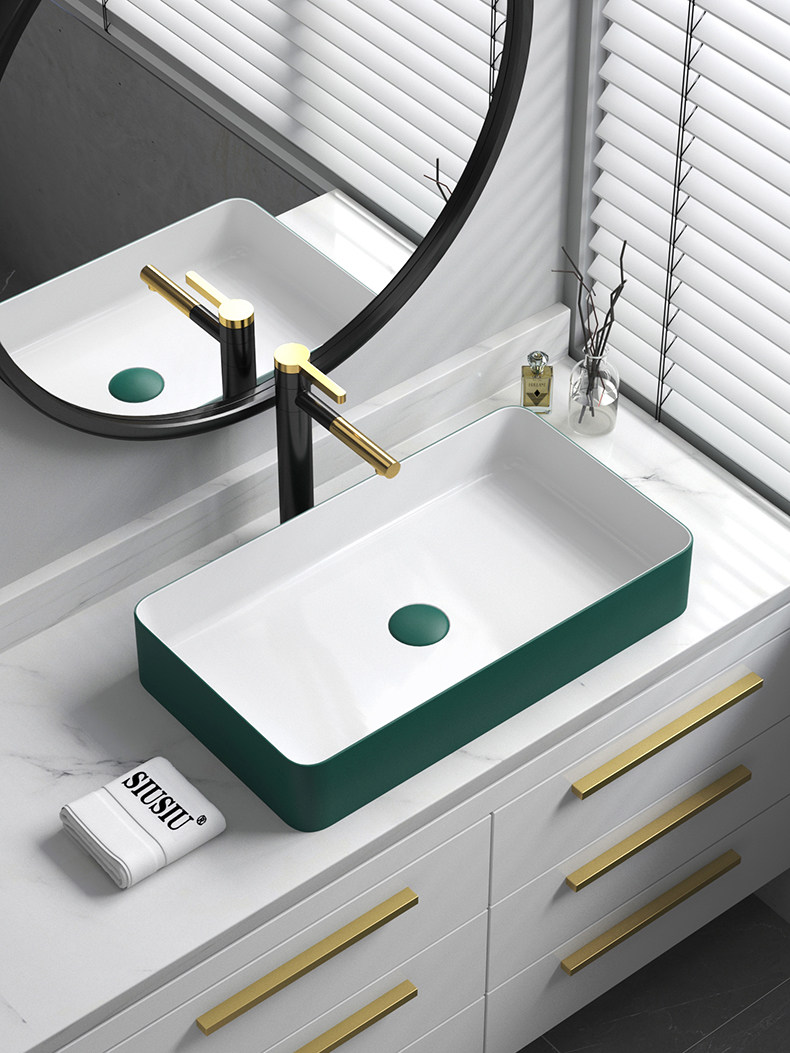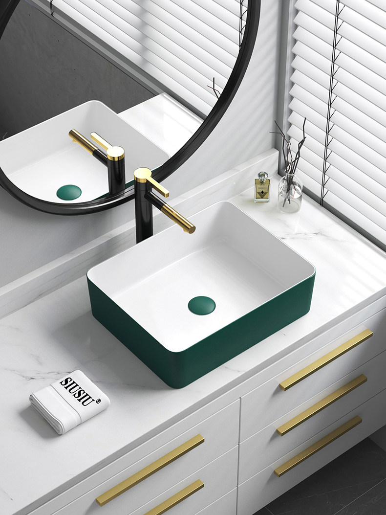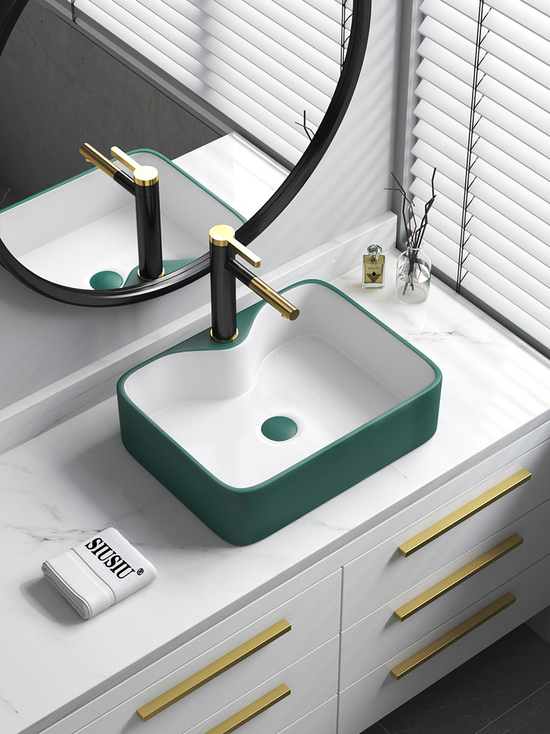 Бассейн чернила зеленая ручная рука в форме квадратной в форме лица с лицом в форме лица с одним бассейном с одним бассейном с круглым умывальником