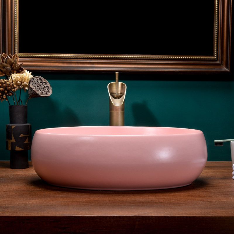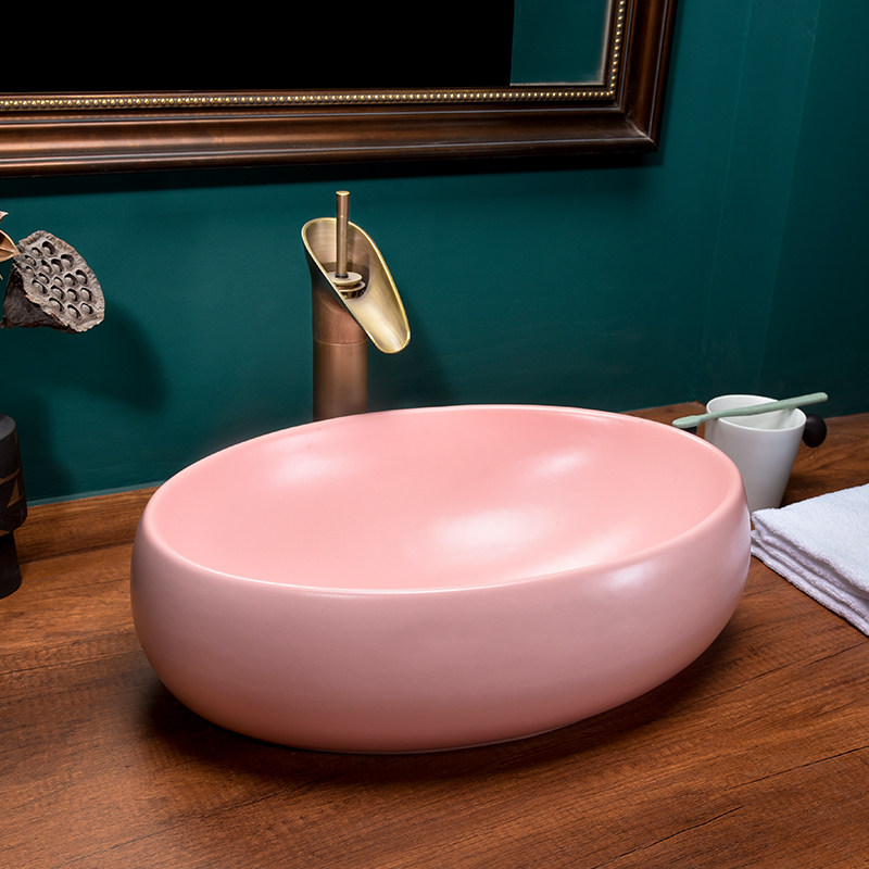 Простая овальная керамическая раковина в скандинавском стиле, розовая раковина Morandi, одна раковина для ванной комнаты, дома