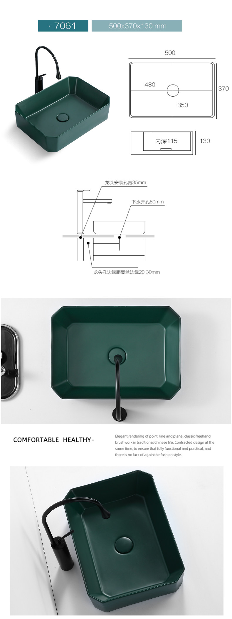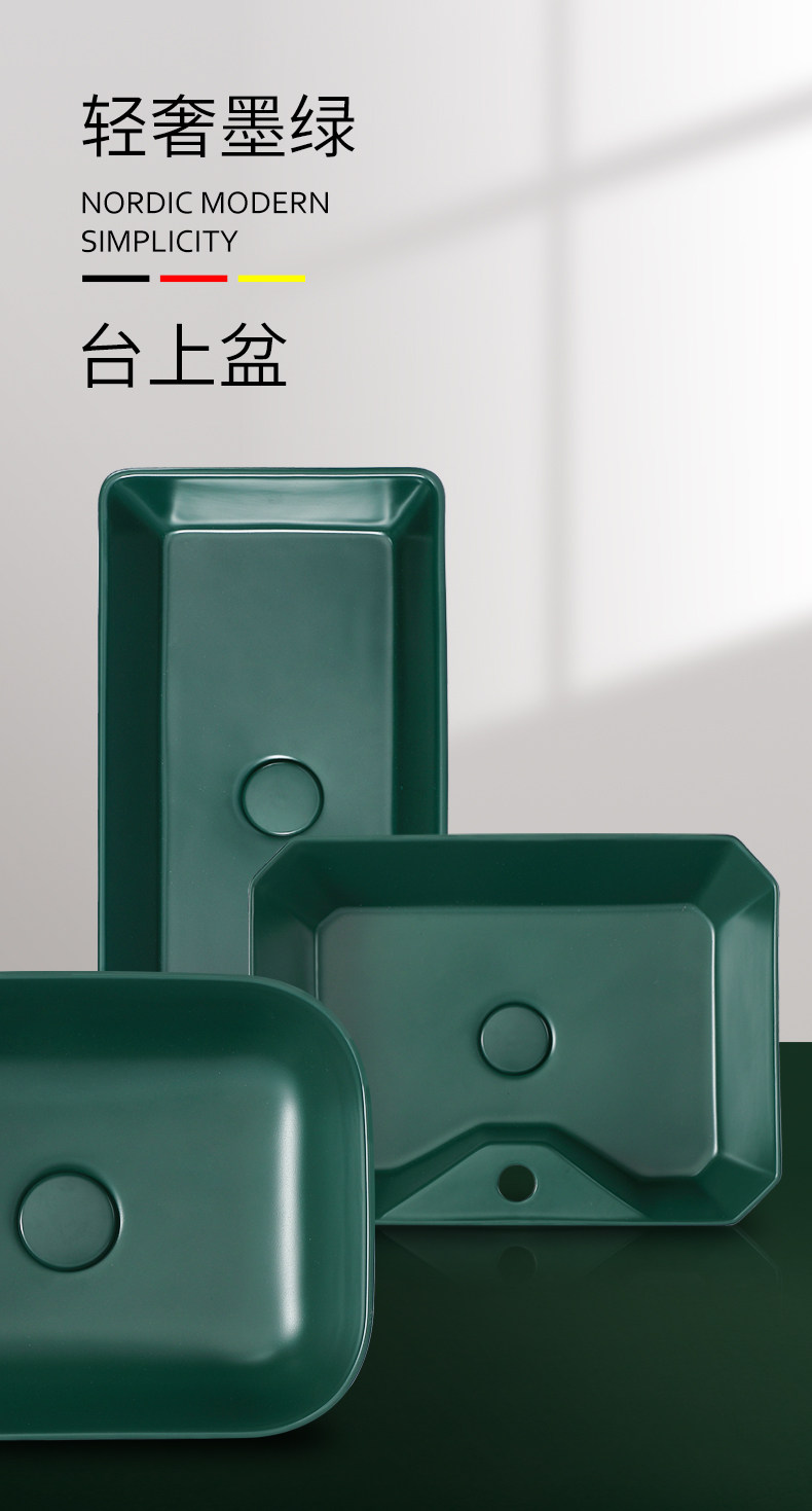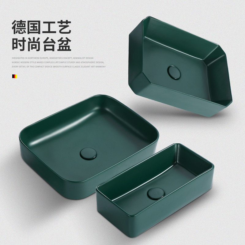 Зеленый гигиенический керамический таз для домашнего использования, прямоугольное очищающее молочко