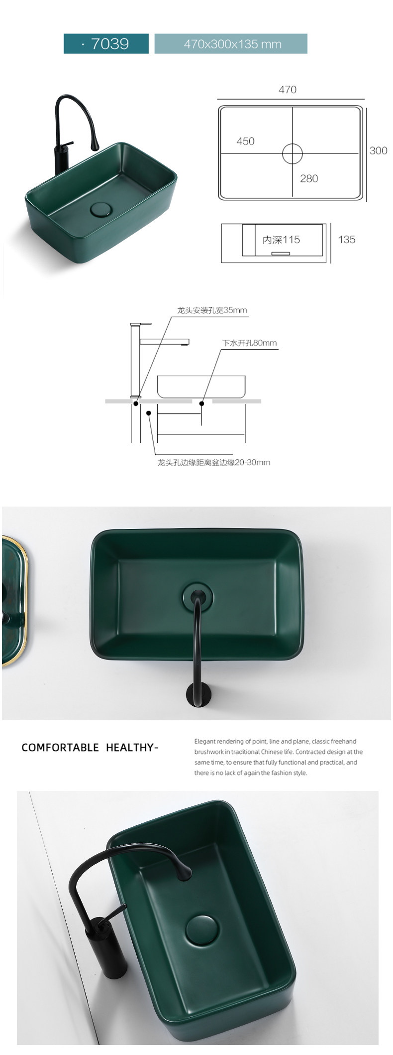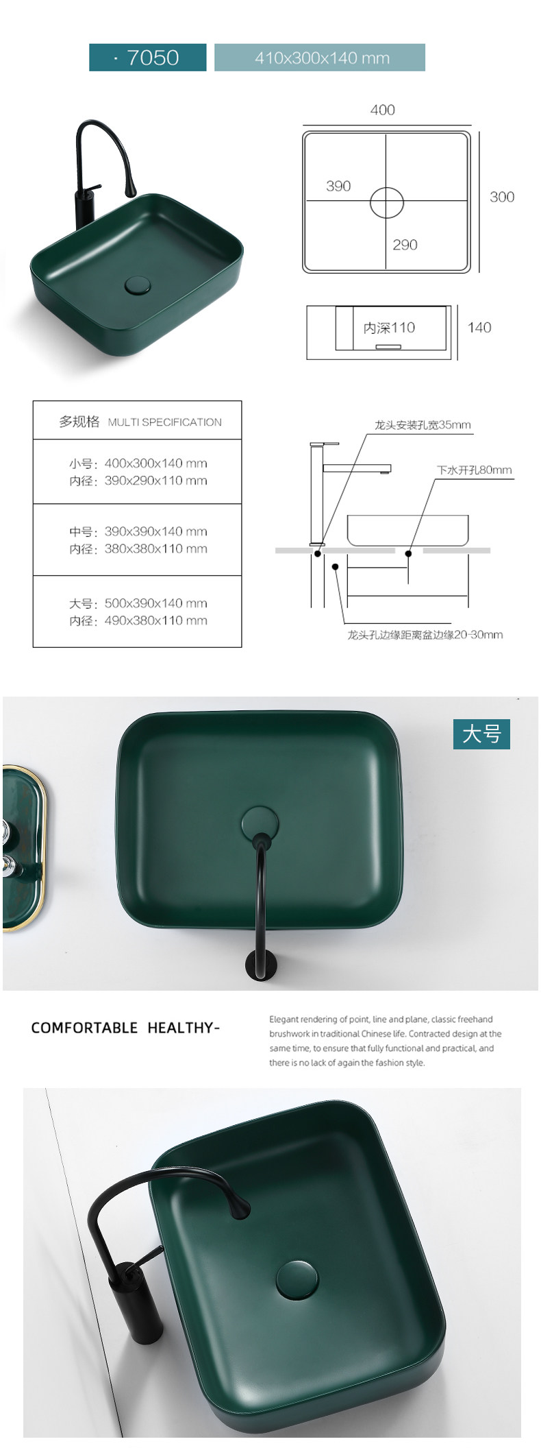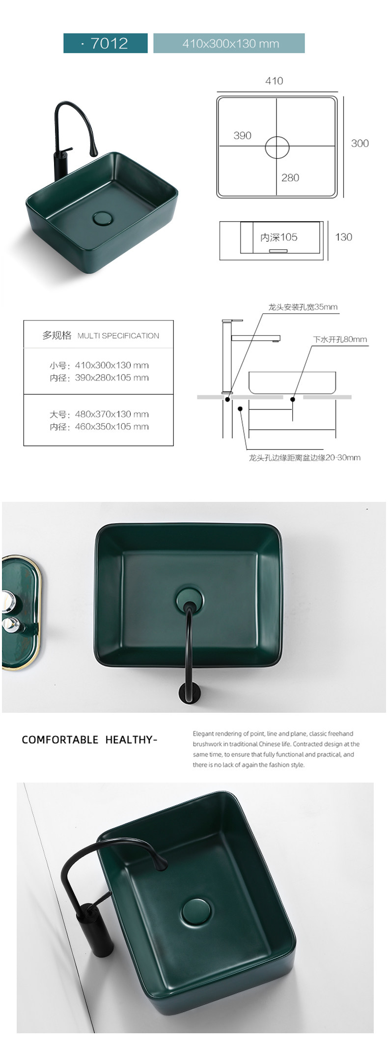 Зеленый гигиенический керамический таз для домашнего использования, прямоугольное очищающее молочко