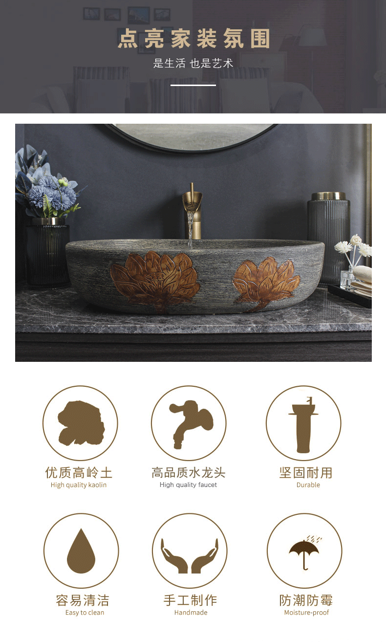 Керамическая платформа ретро Хэндбен Одиночный бассейн для ванной комнаты для ванной комнаты для дома бассейн бассейн бассейн водный бассейн открытый художественный арт -платформа