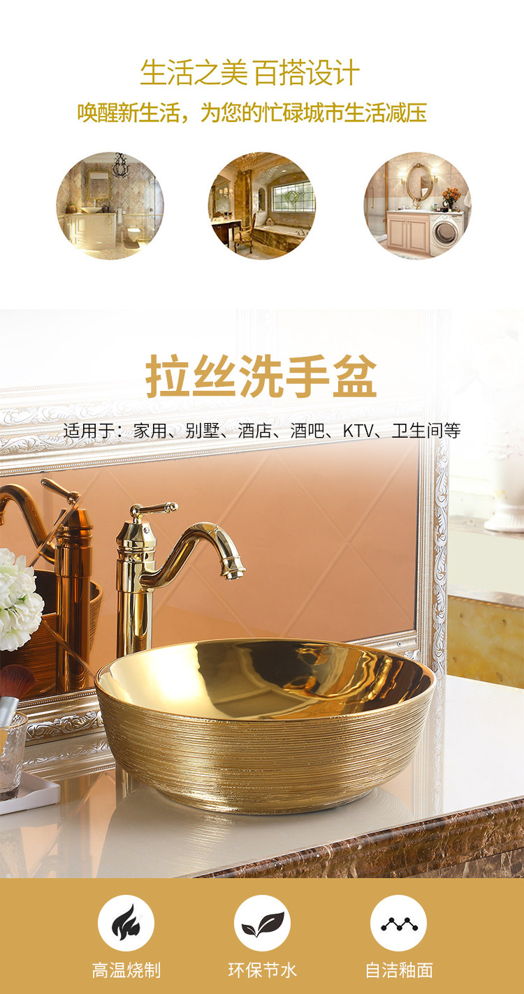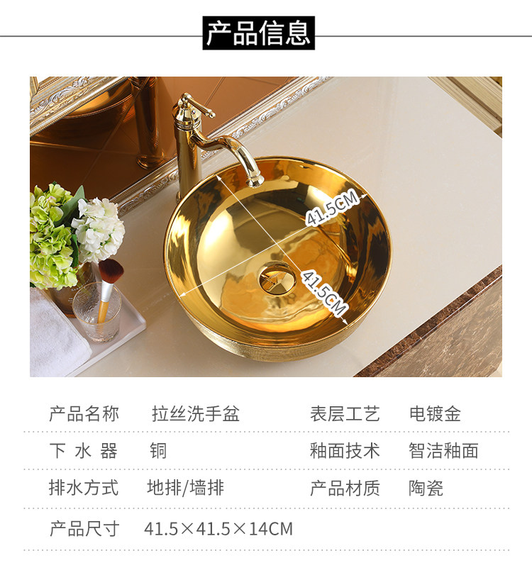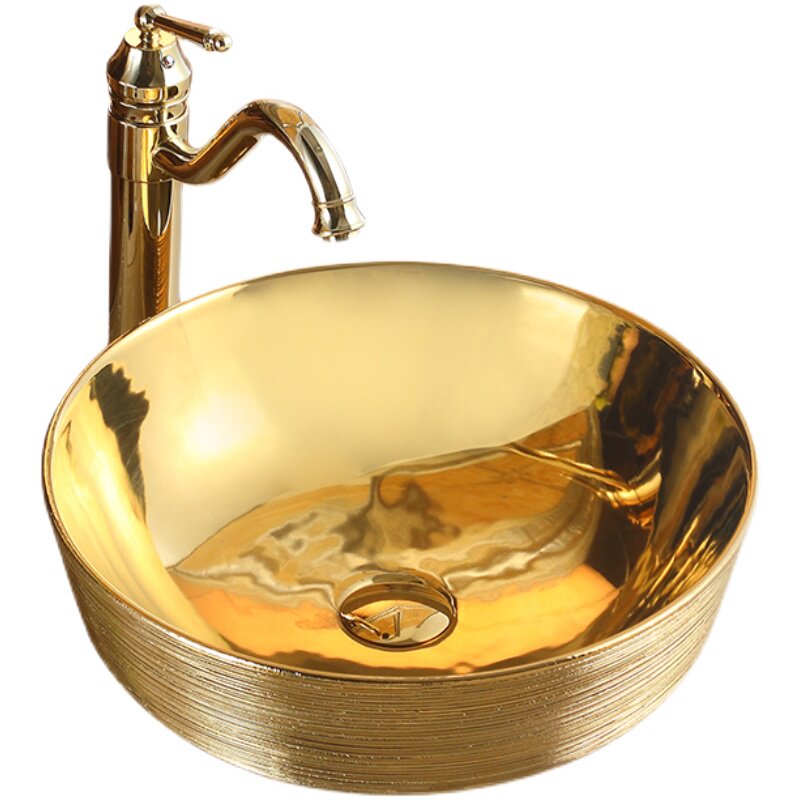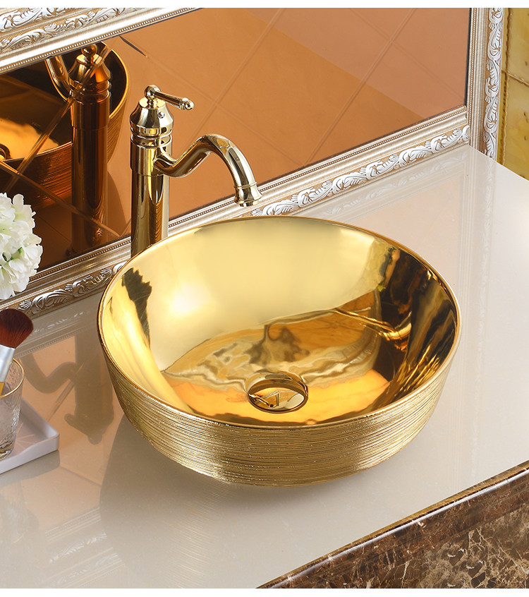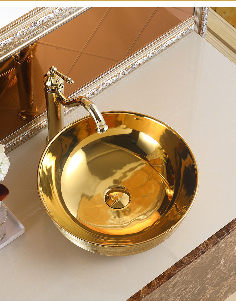 Матовая круглая керамическая раковина с золотой столешницей, художественная раковина, европейский стиль, раковина для дамской комнаты, умывальник, современный умывальник