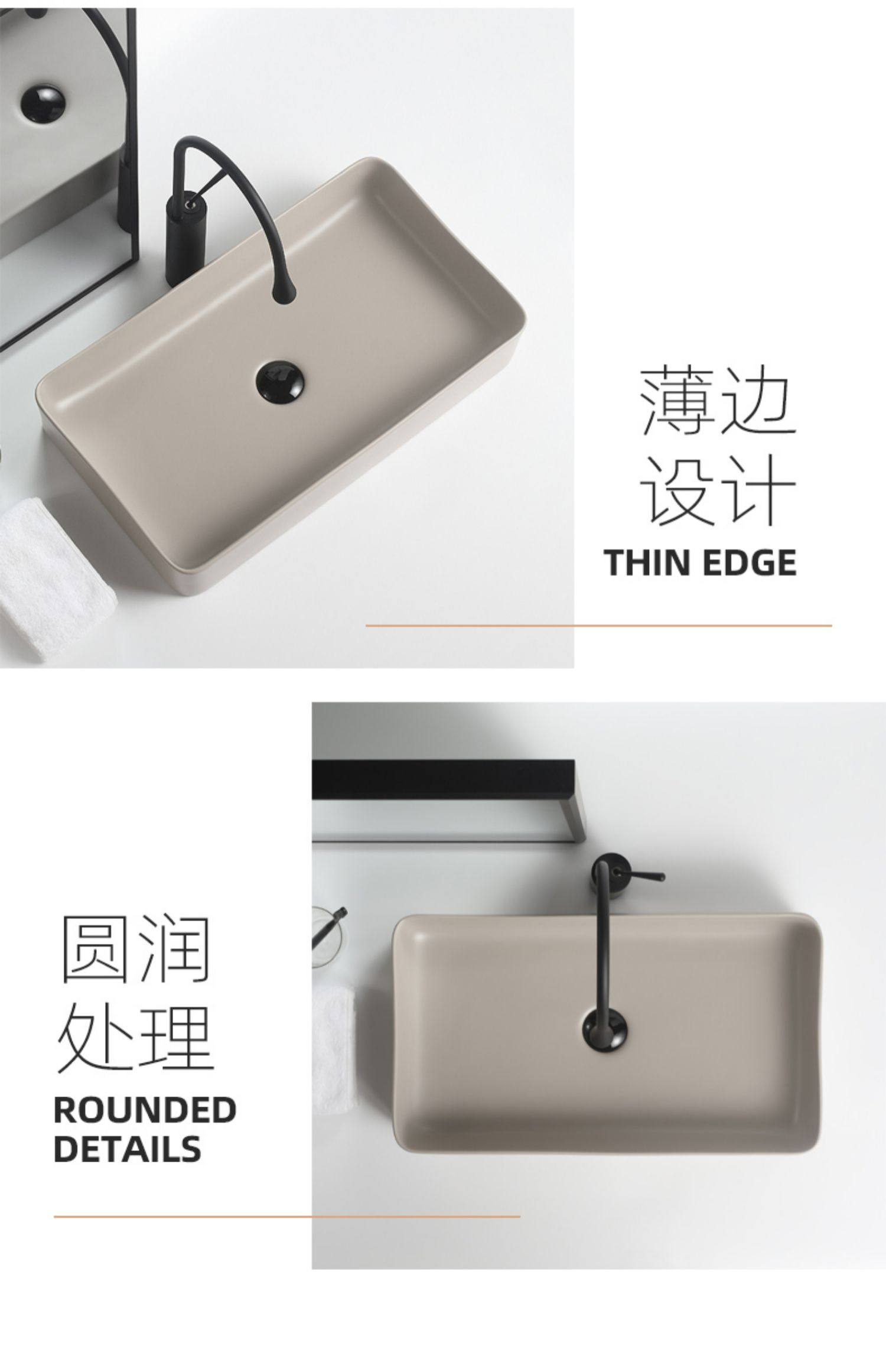 - Раковина 600*340 (хаки) + 3096 черный вращающийся смеситель для горячей и холодной воды
