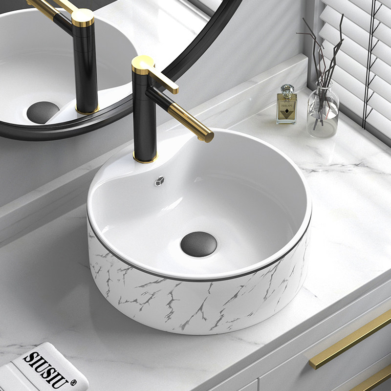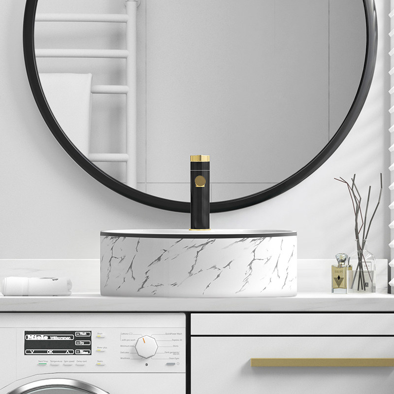 Мраморная рисунка черная граница границы шаймбазин круглый умывальник туалетная керамическая рука