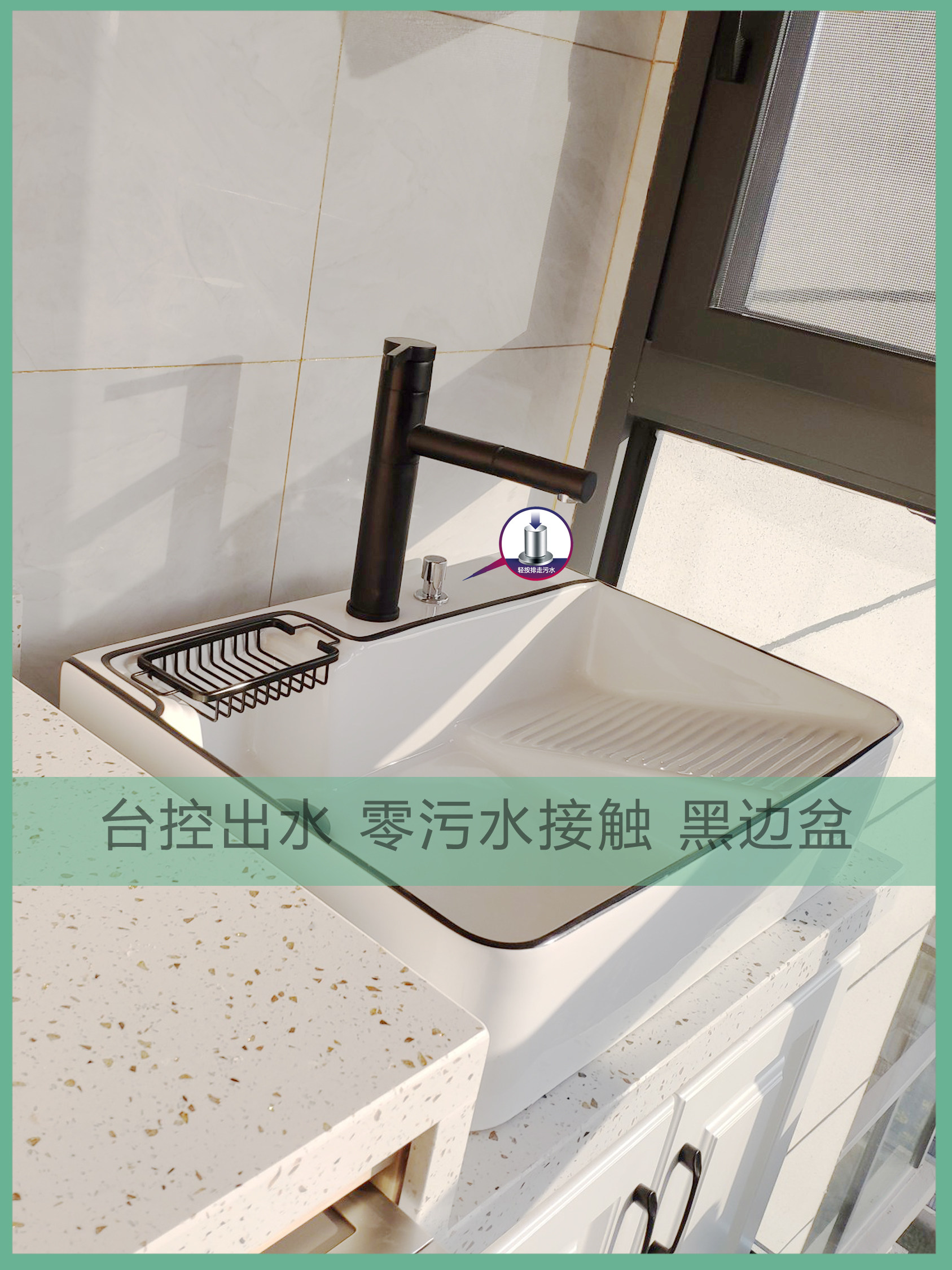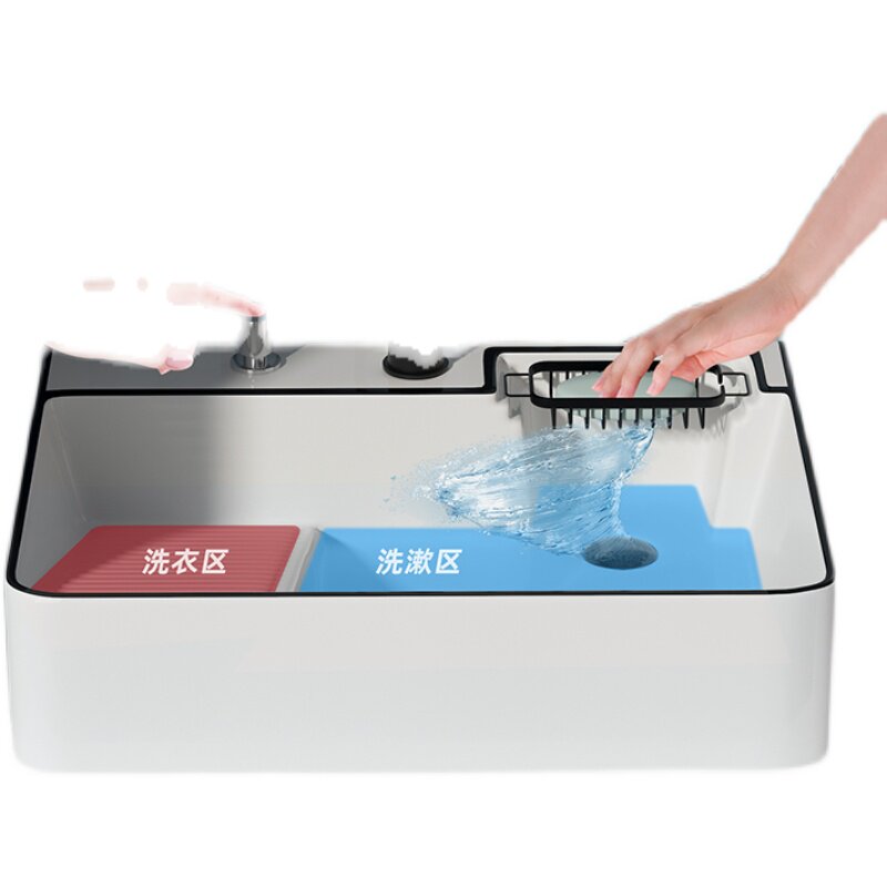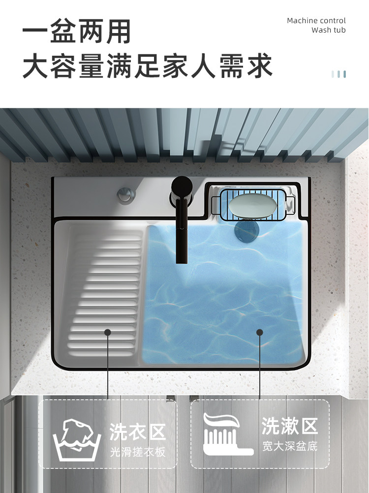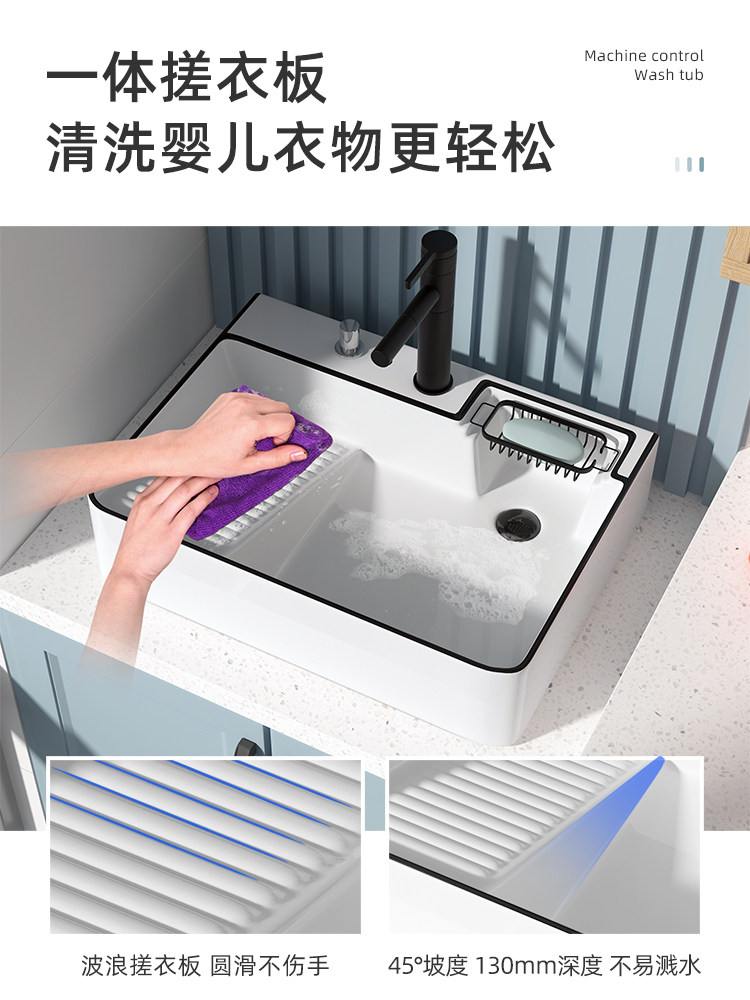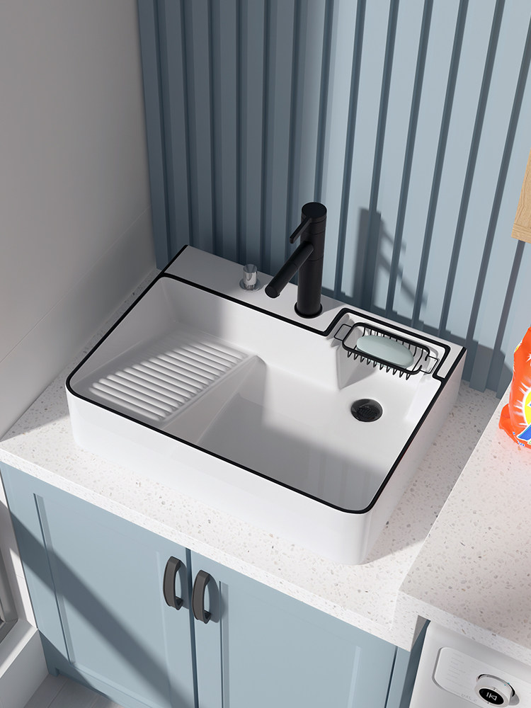 Балконный умывальник, керамический умывальник со стиральной доской, умывальник для стирки, счетчик для стиральной машины, встроенный боковой слив с одной раковиной