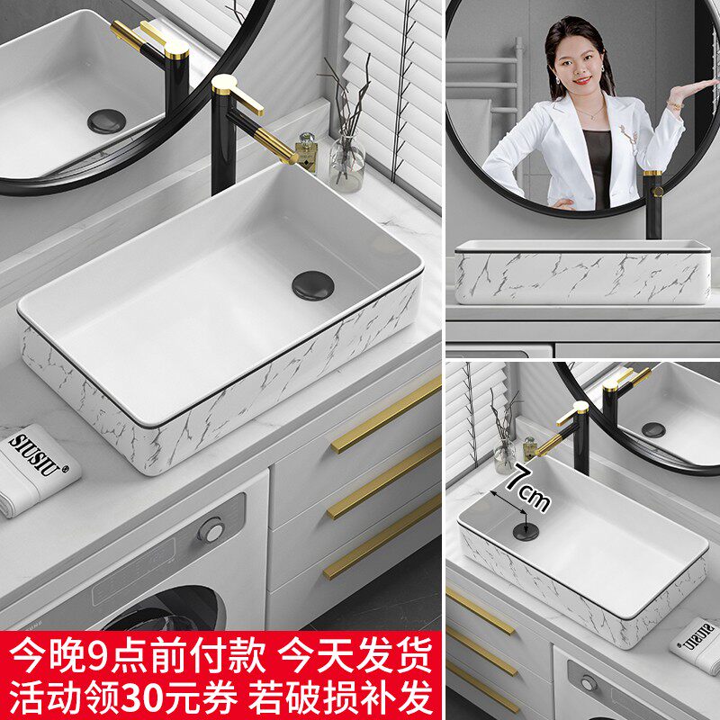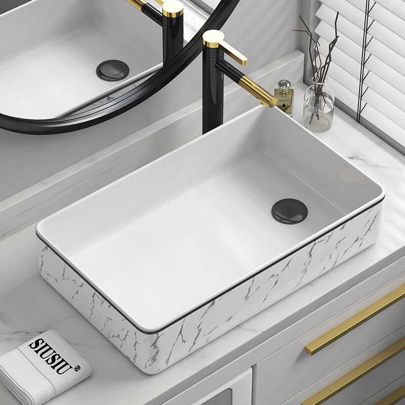 Боковая сторона водопровода Керамическая стиральная машина для мытья базина на стойке на каракулированном поляризованном границе поляризованного пограничного резервуара 7 см.