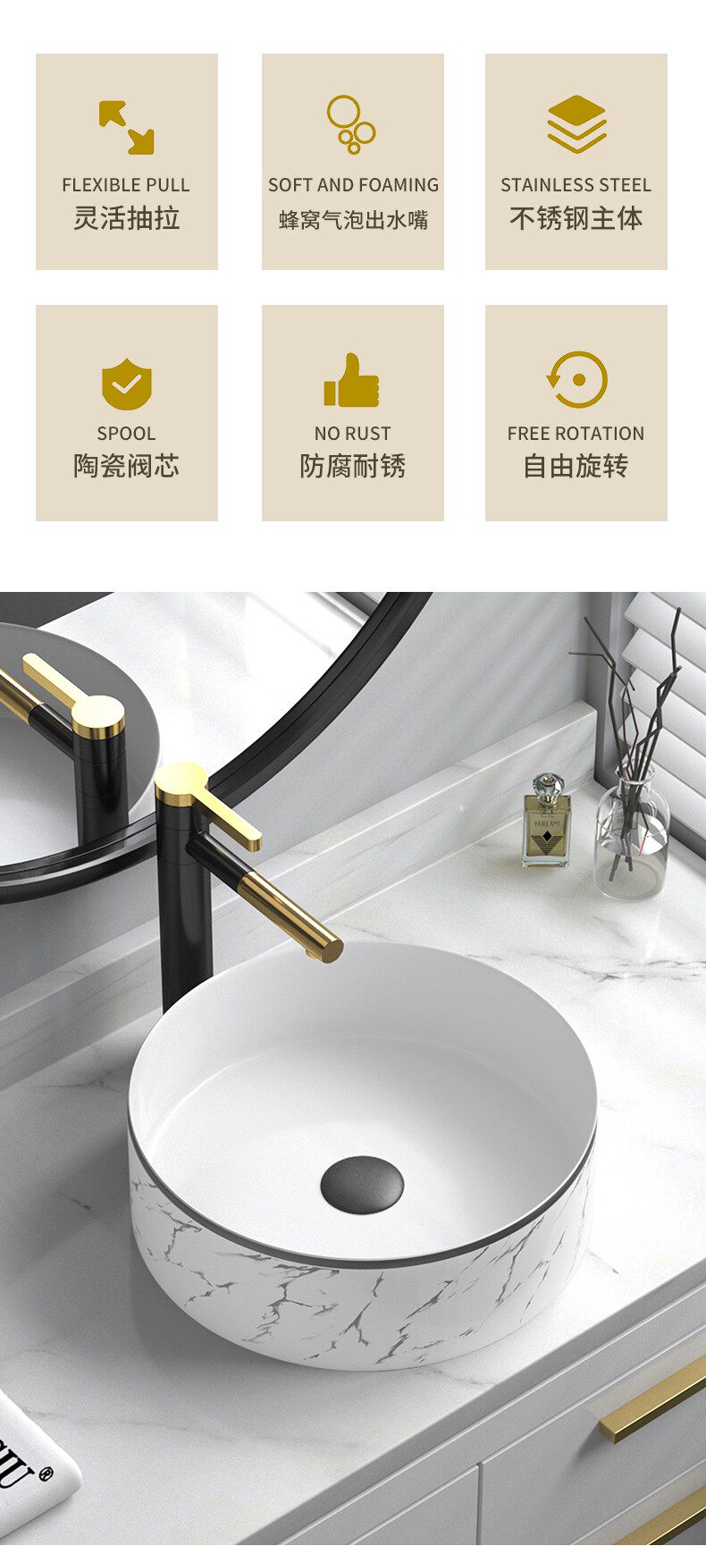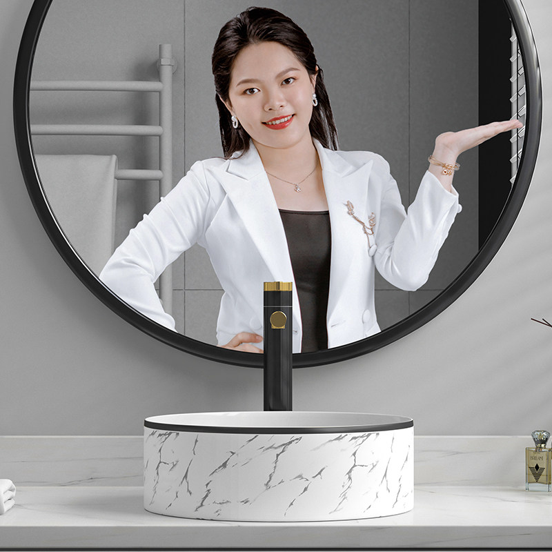 Мраморная рисунка черная граница границы шаймбазин круглый умывальник туалетная керамическая рука