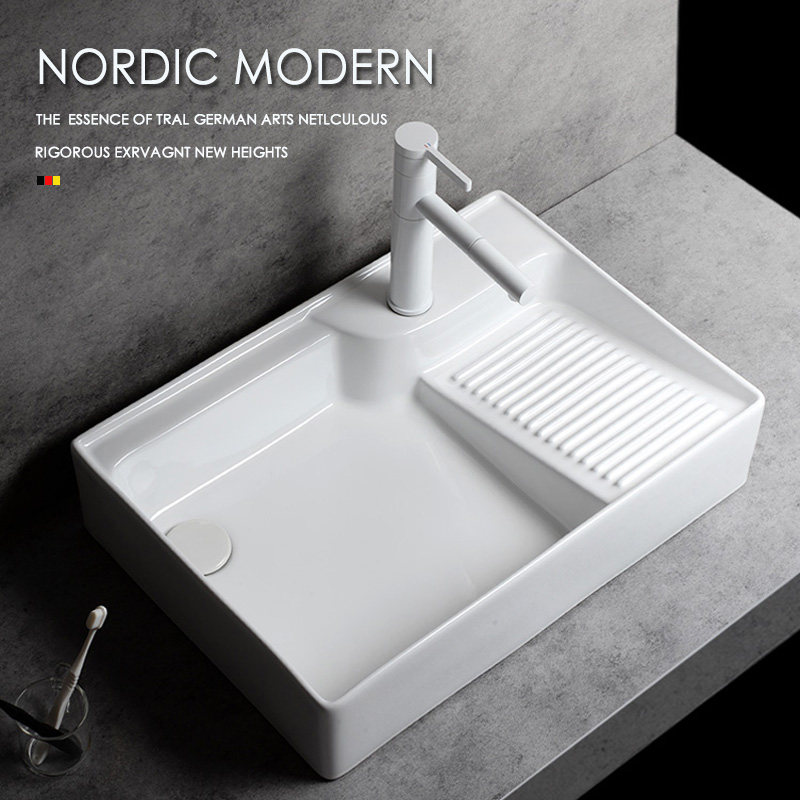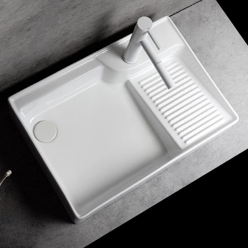 Балконный бассейн керамический стиральный бассейн, бурная тарелка, бассейн пруд канавки с боковой водой бокового крана, Одиночный бассейн Washbasin