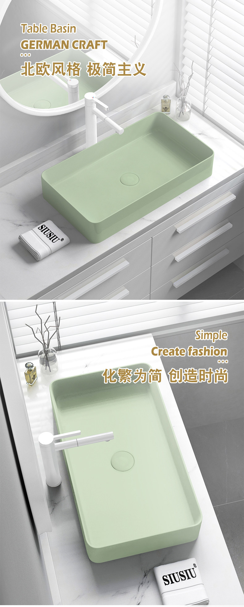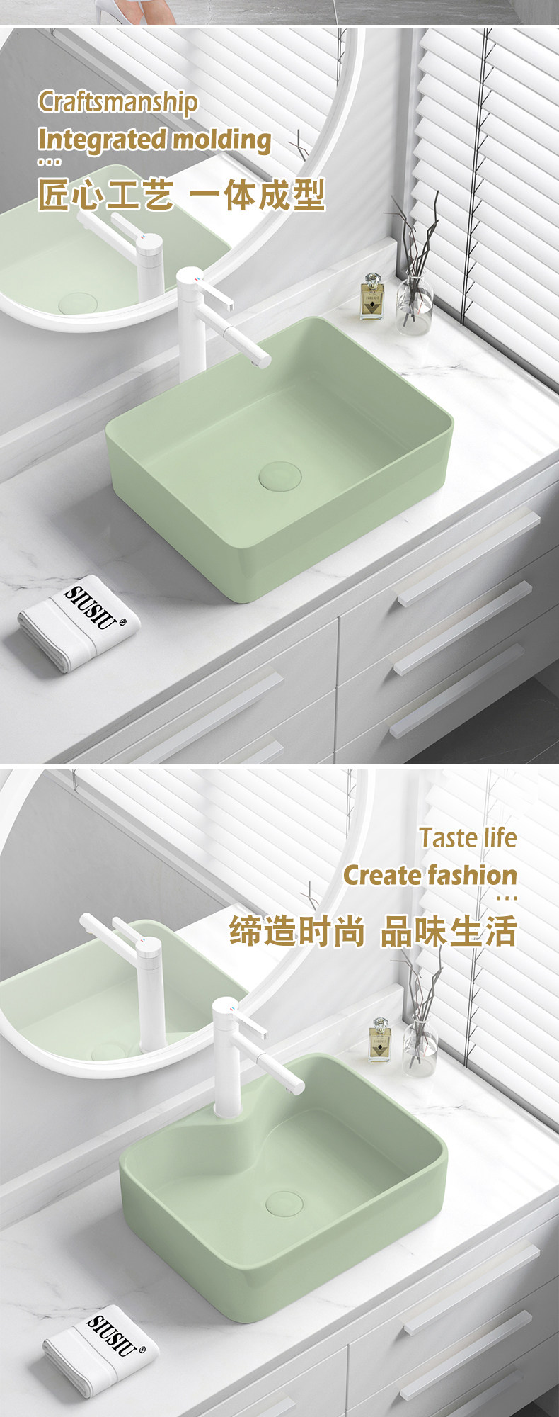 Зеленый керамический гигиенический прямоугольный таз, очищающее молочко
