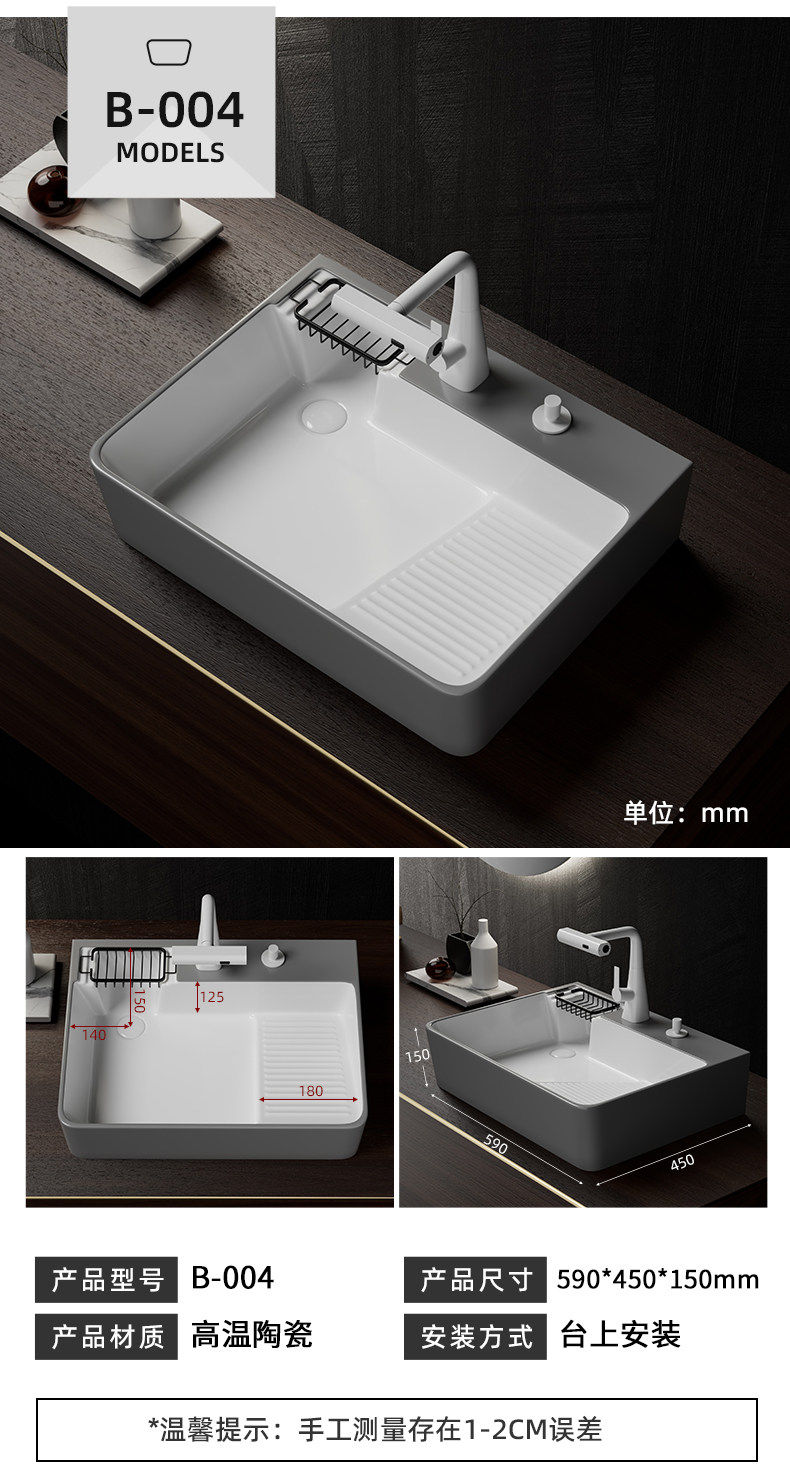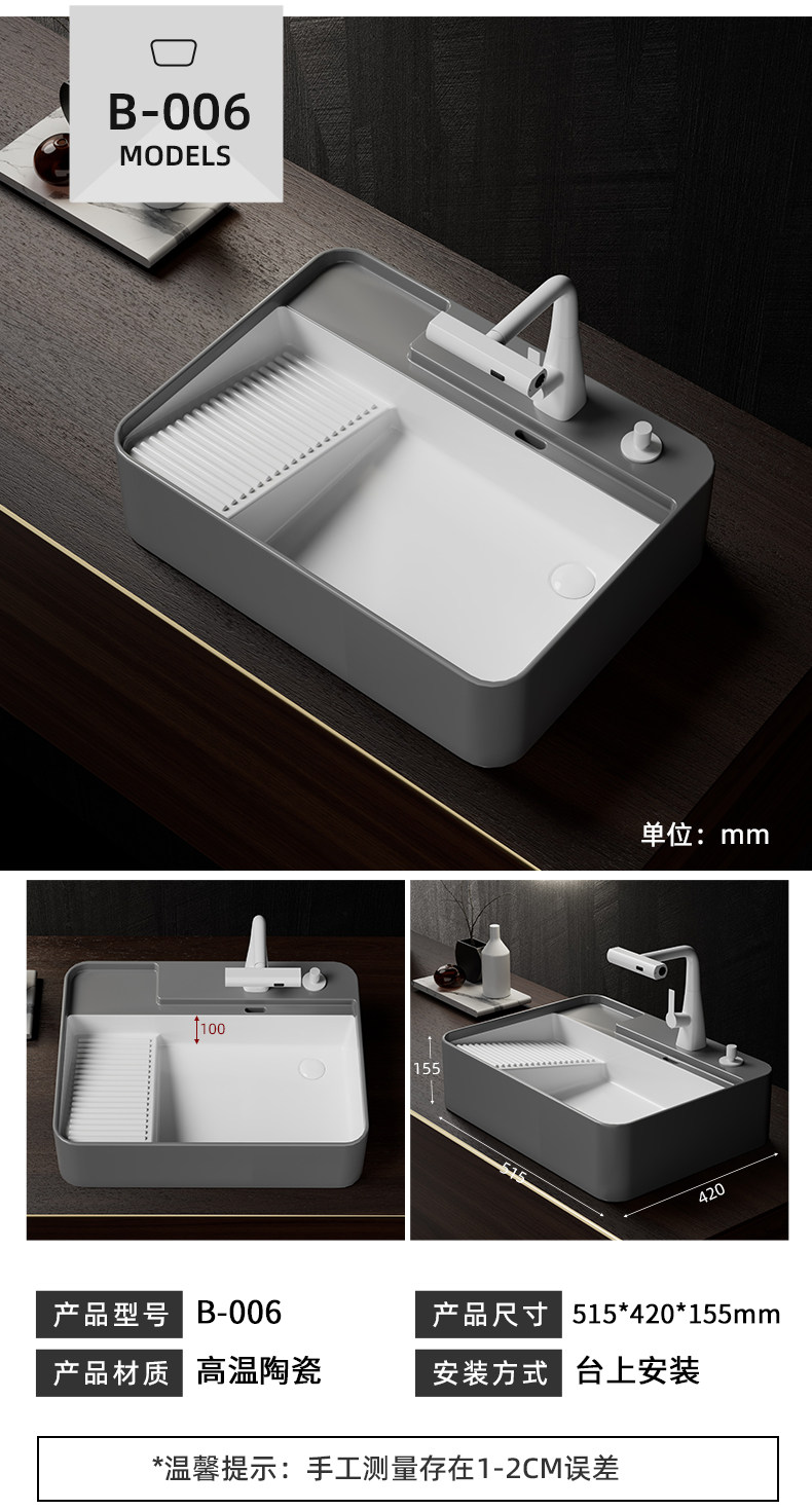 Балконная стиральная машина, умывальник, серый керамический боковой слив с стиральной доской, сливной умывальник слева и справа, одинарный умывальник