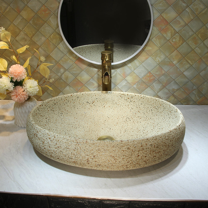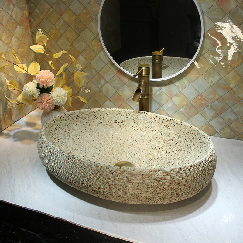 Керамическая раковина кремового цвета, старинная раковина, покрытая имитацией камня, простая дамская комната, легкая роскошная раковина, уличная раковина