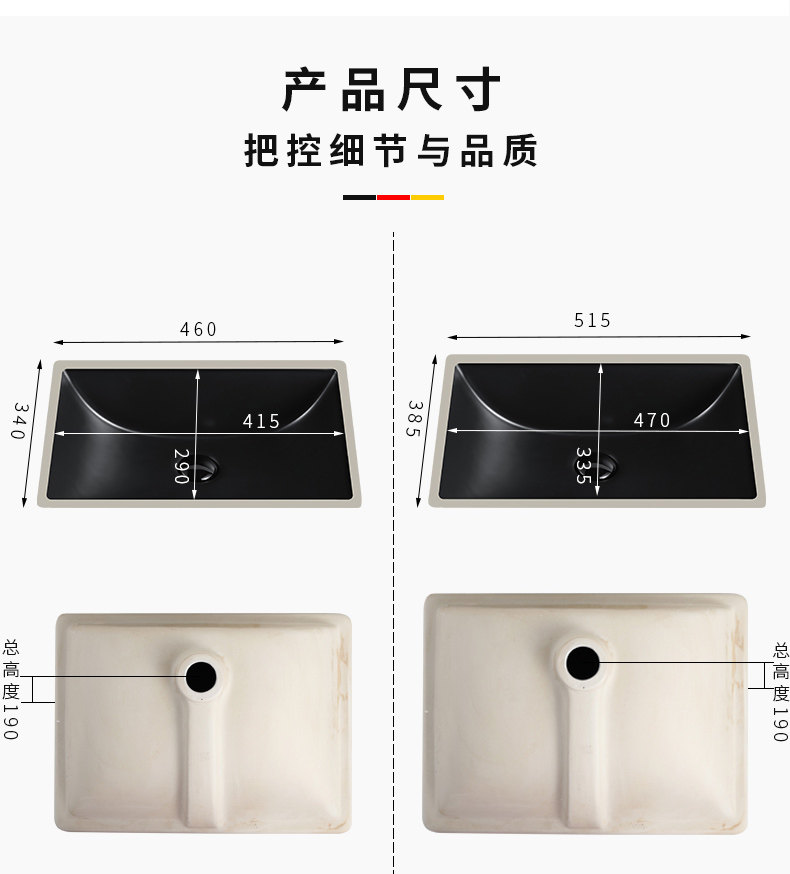 若木 Квадратный гигиенический встроенный керамический черный таз для домашнего использования