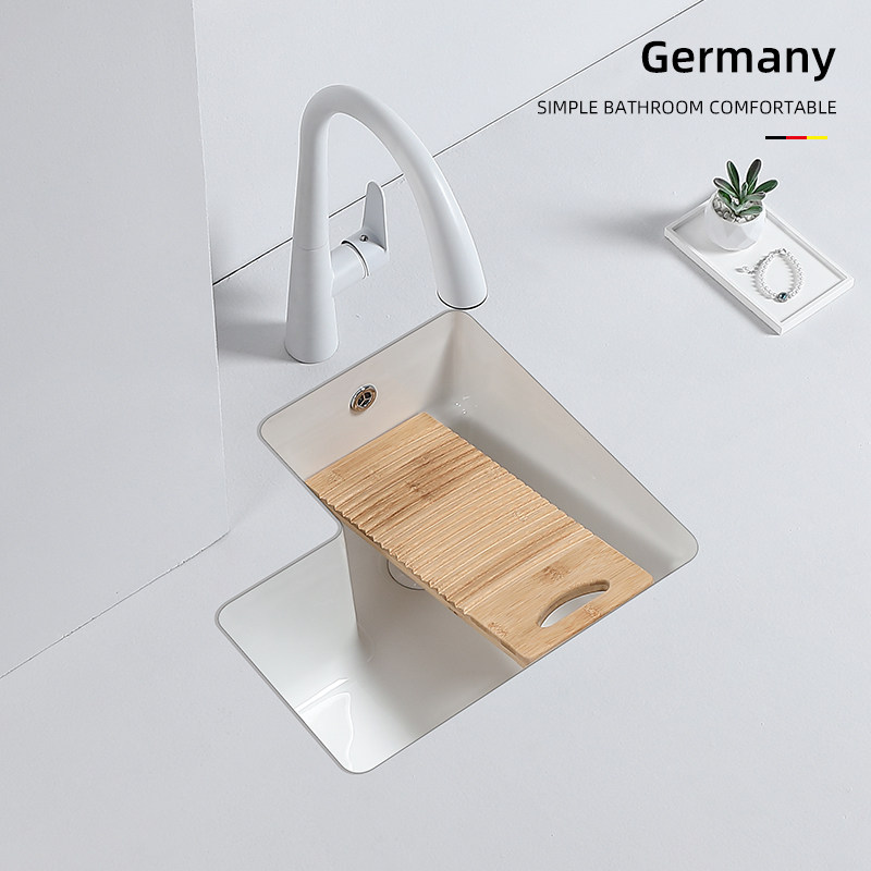 Балконный умывальник под столешницей, встроенный умывальник с деревянной стиральной доской, керамическая угловая раковина, углубленный стол для стирки, одинарная раковина
