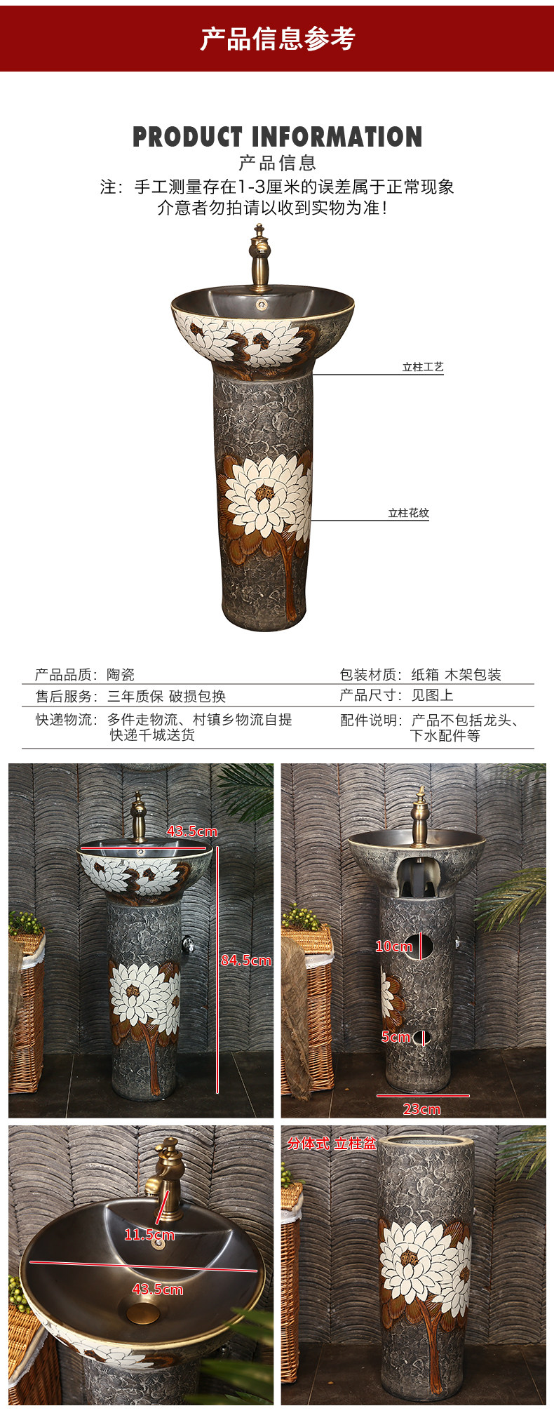 Retro Art Colun Cote Ceramic Columns -Washbasin имитация двора открытого бассейна для мытья бассейн.