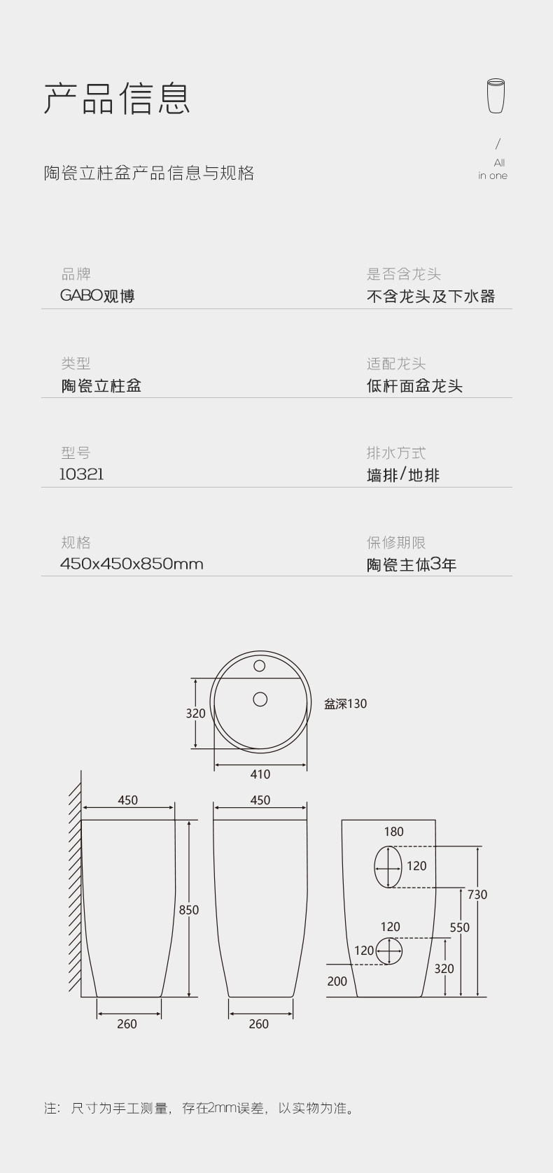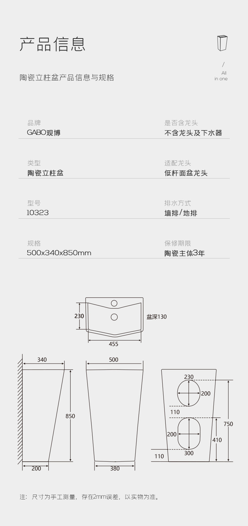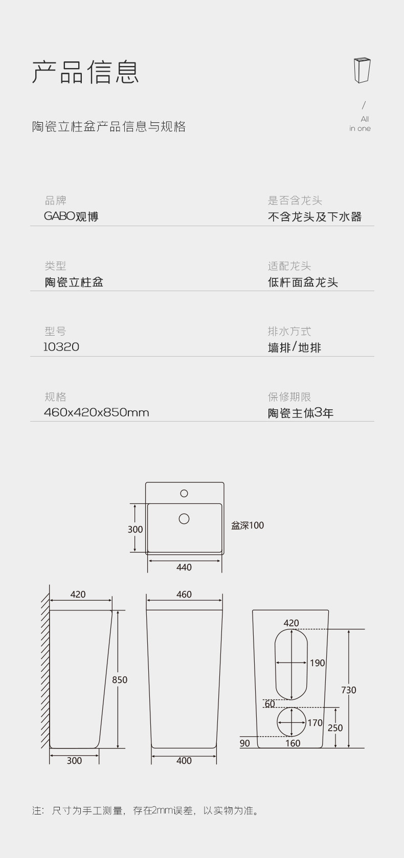 Gabo Guan Boli Pillar Basin Basin, предоставляя санитарные маленькие подразделения керамика керамика ручная бассбас 10321