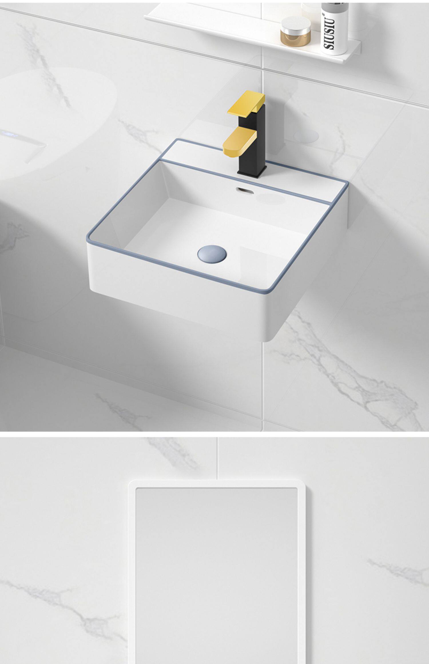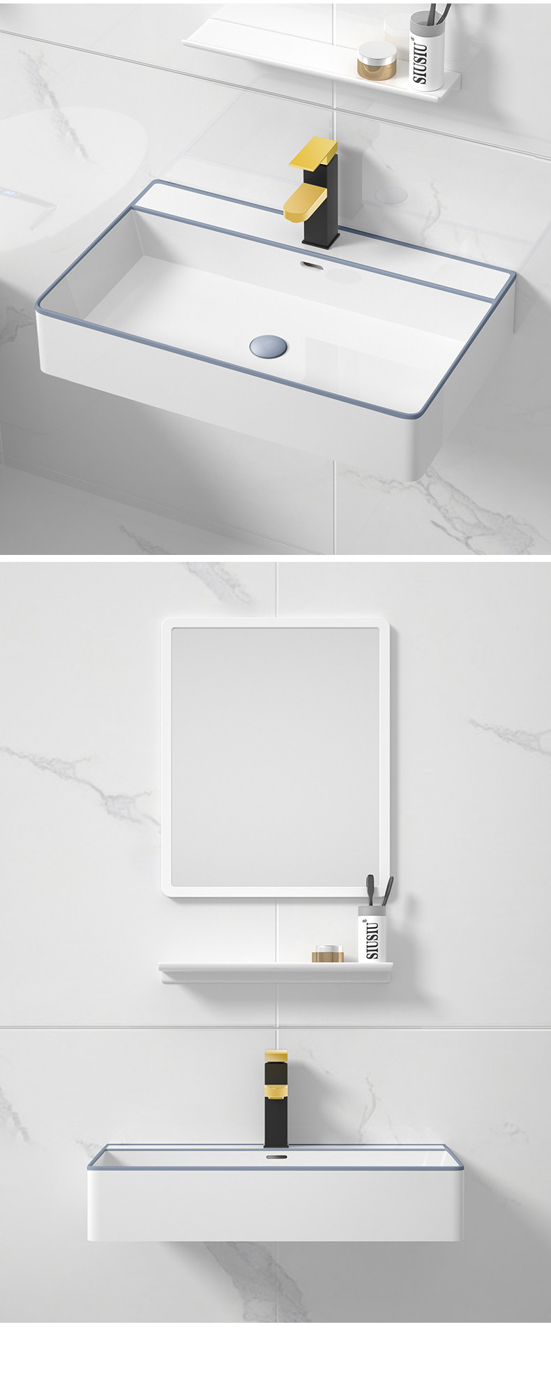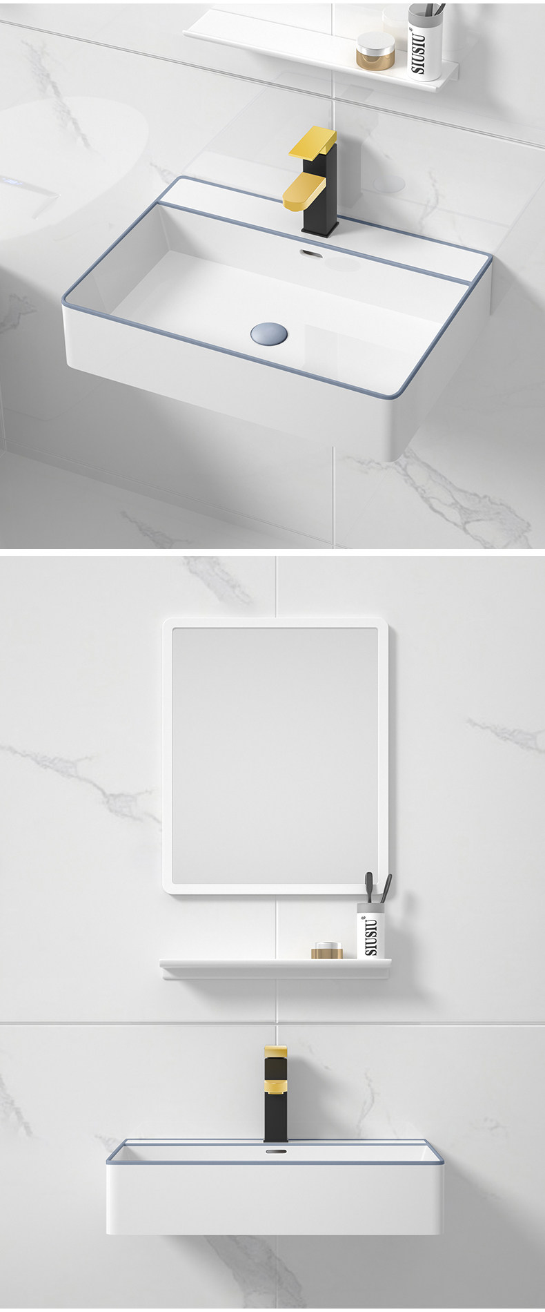 - 60 см, висящий бассейн+кран+зеркало белого рамы