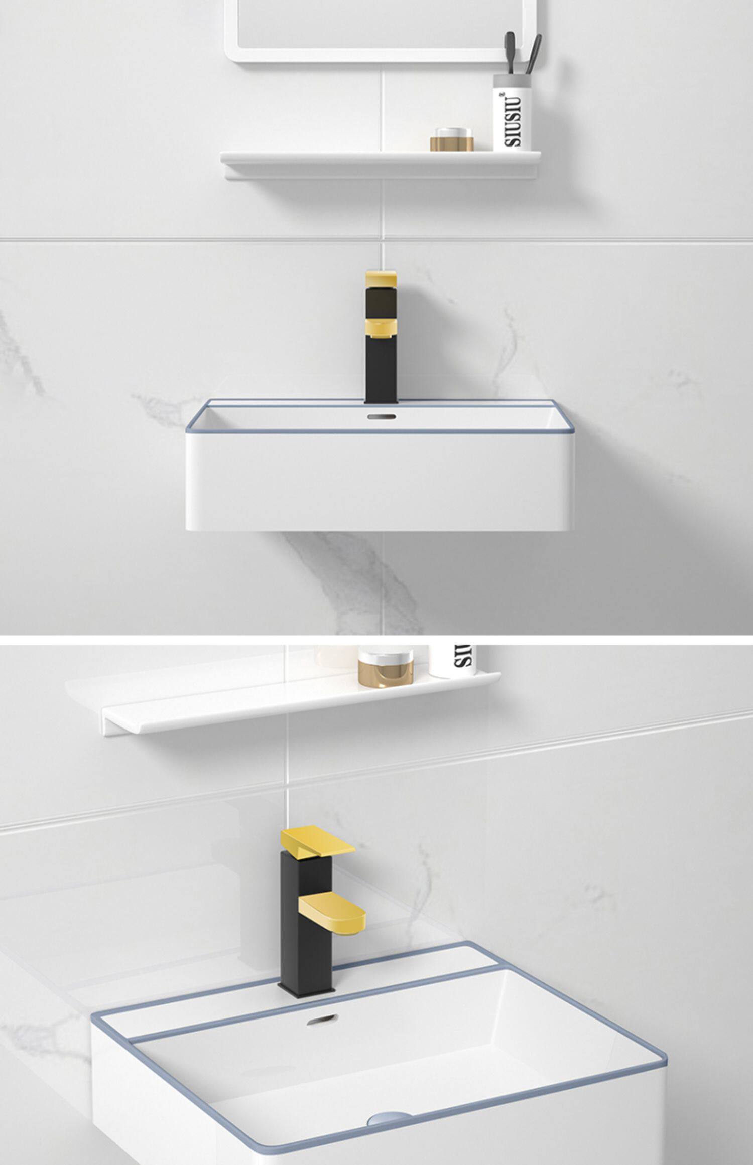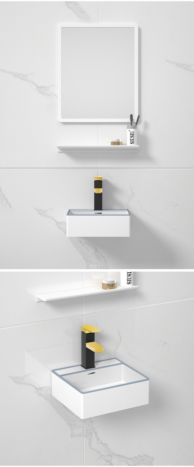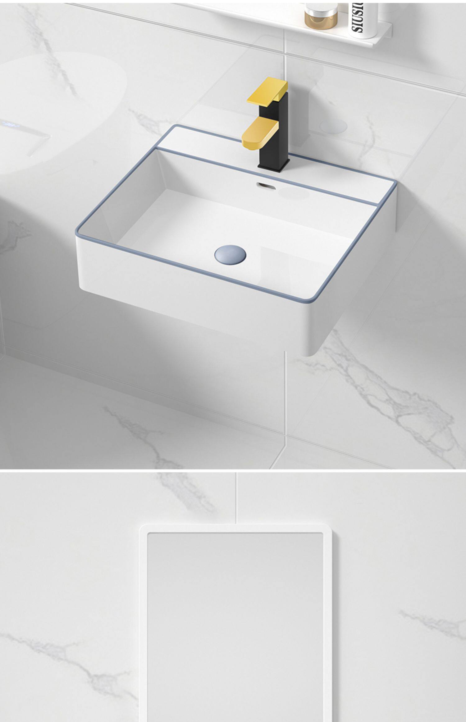 - 60 см, висящий бассейн+кран+зеркало белого рамы