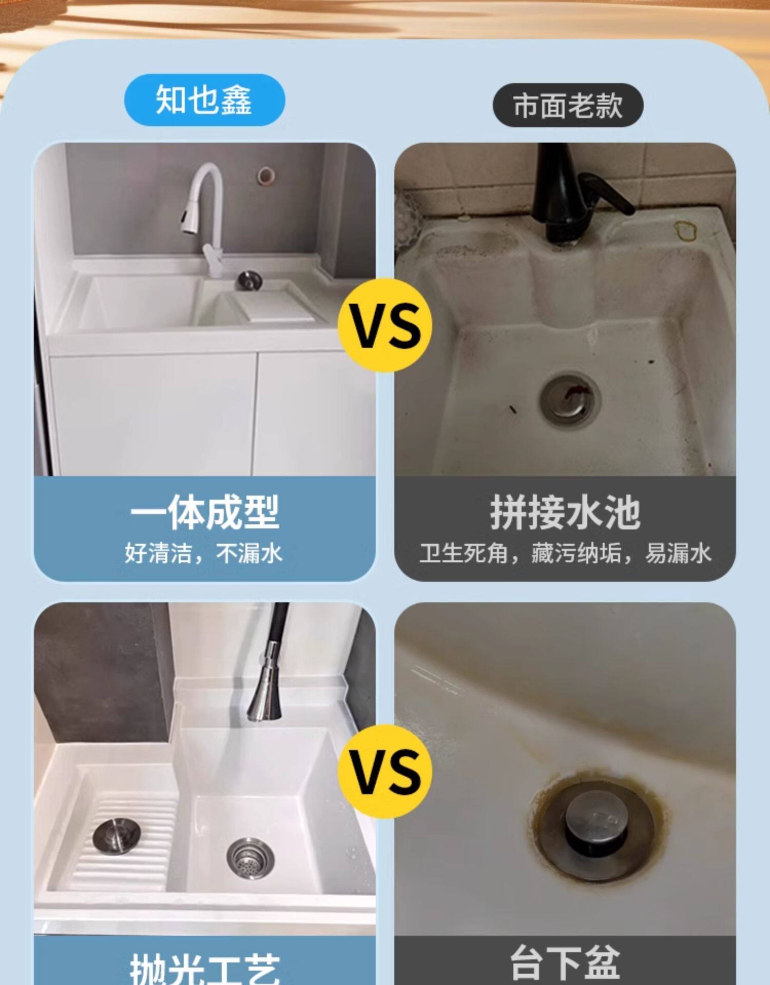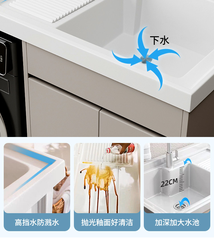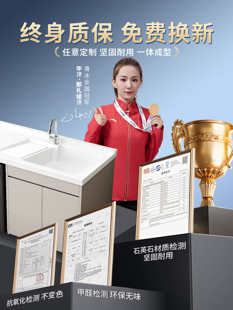 Индивидуальная балконная пруда пруда, чтобы замесить высоту горшка, разрезать угол кварцевого камня для мытья гардероба, интегрированный шкаф для ванной комнаты Комбинированная столешница