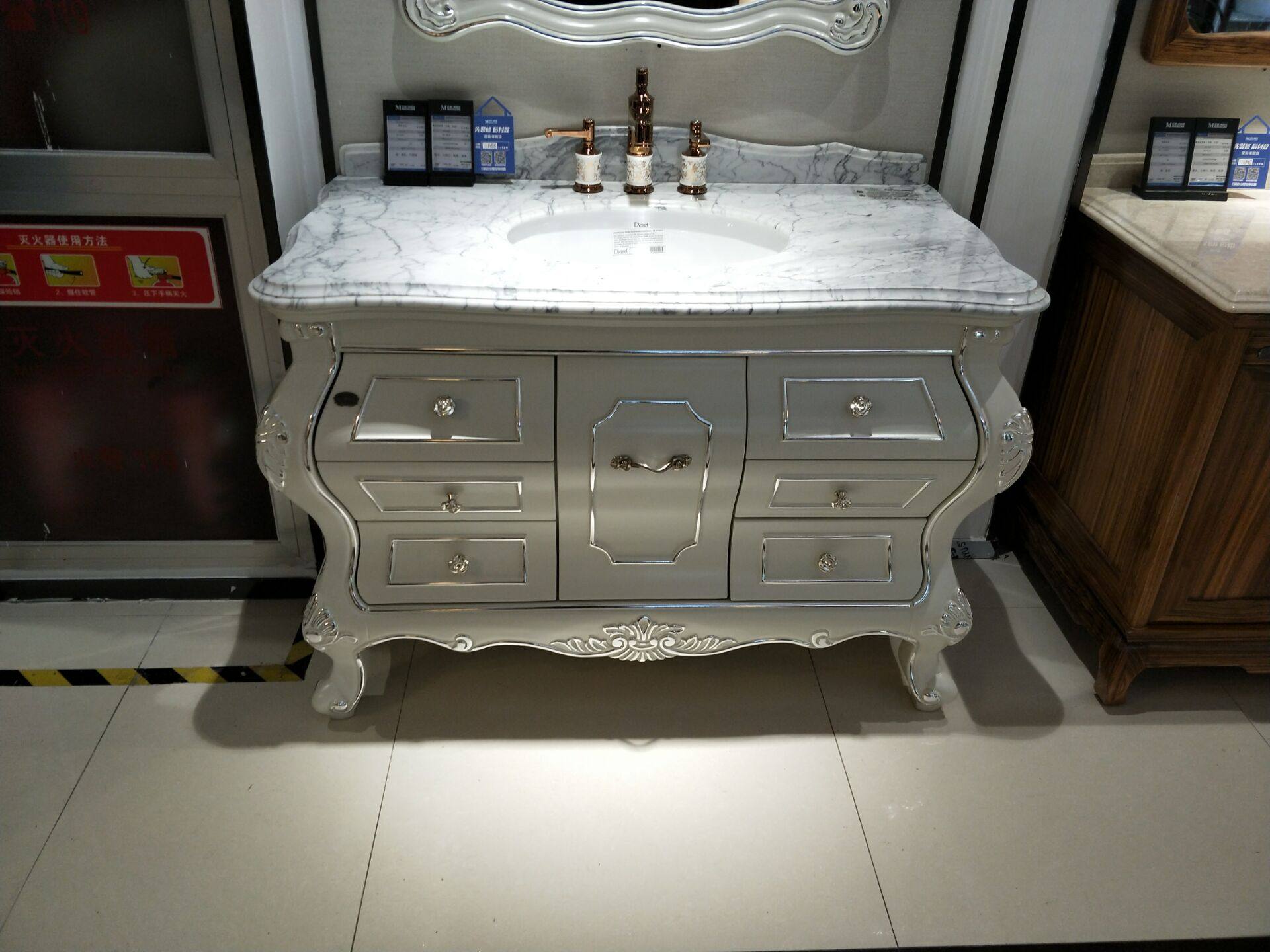 Европейский в стиле ванная комната комбинация из красного дуба с твердым деревом в ванной шкаф туалет бассейн Мраморный бассейн Мраморный бассейн