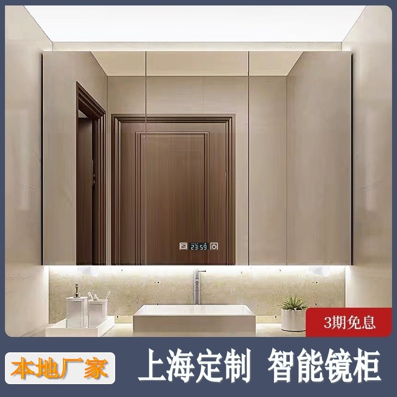 Шанхайский индивидуальный зеркальный шкаф Умный зеркальный шкаф разлагаемый зеркальный шкаф для ванной комнаты с твердым деревом с огнями с огнями для хранения стены