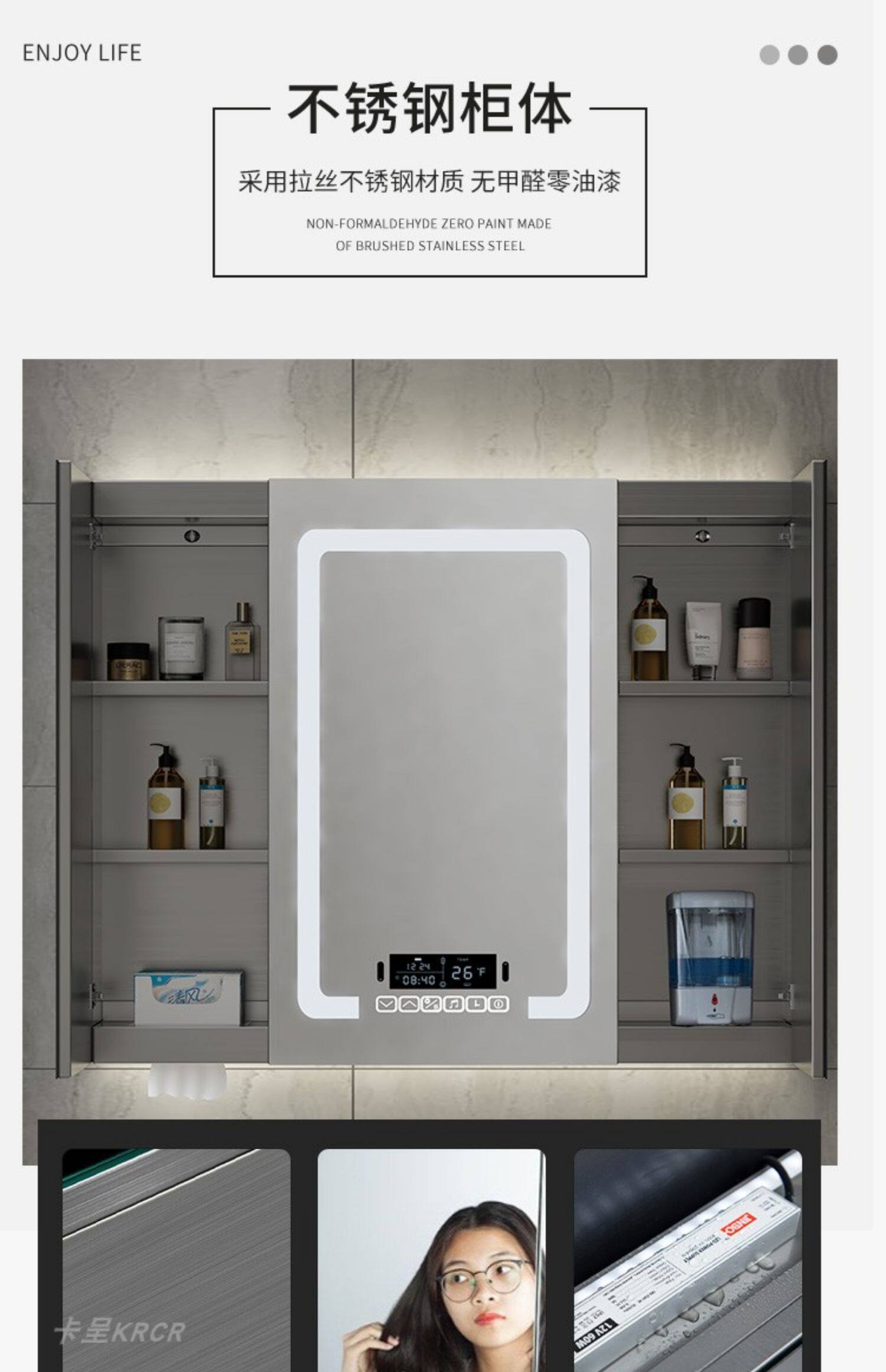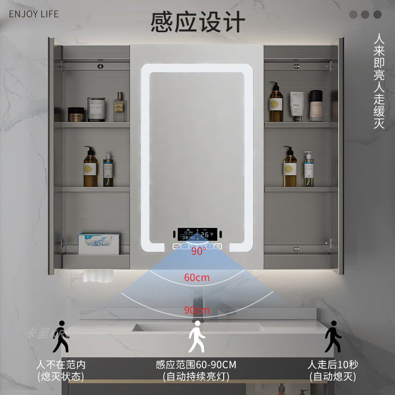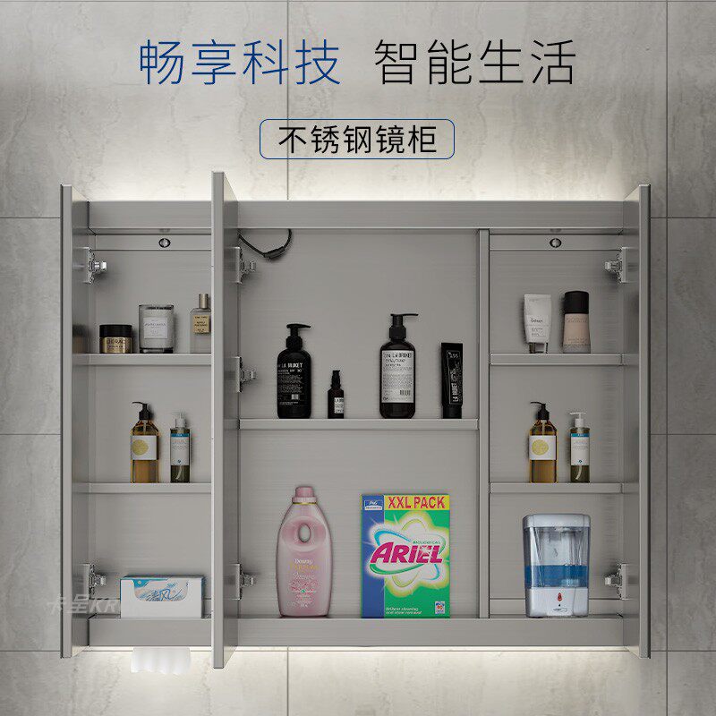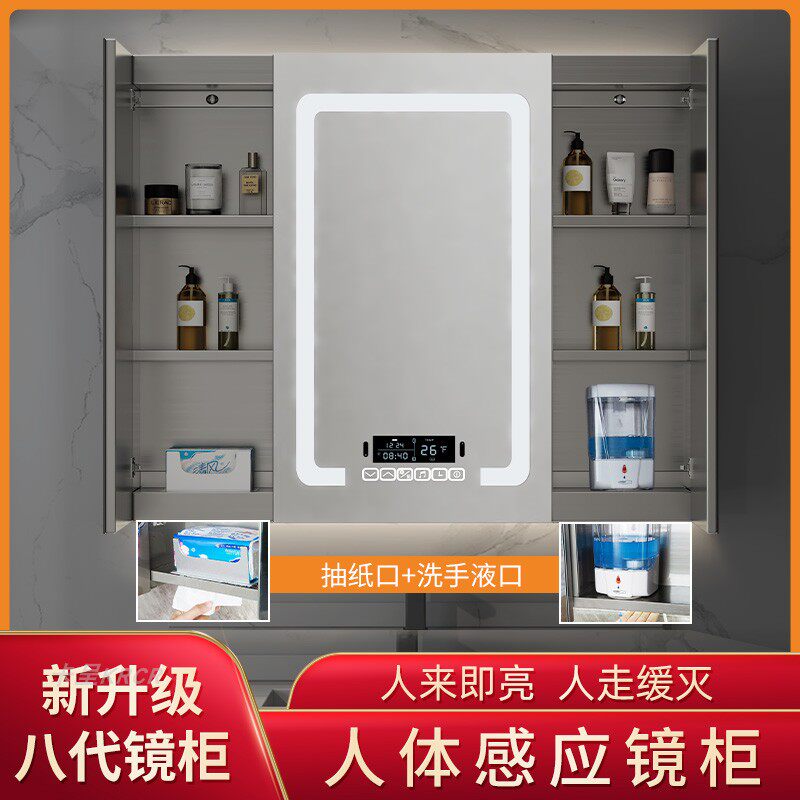 Умное индукционное настенное зеркало из нержавеющей стали с подсветкой, система хранения, делается под заказ