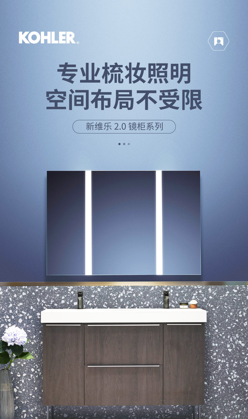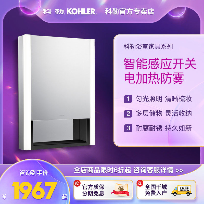 Умное зеркальное шкаф Kohler Smart Mirror Want -The Want с огнями и туманным шкафом для ванной комнаты