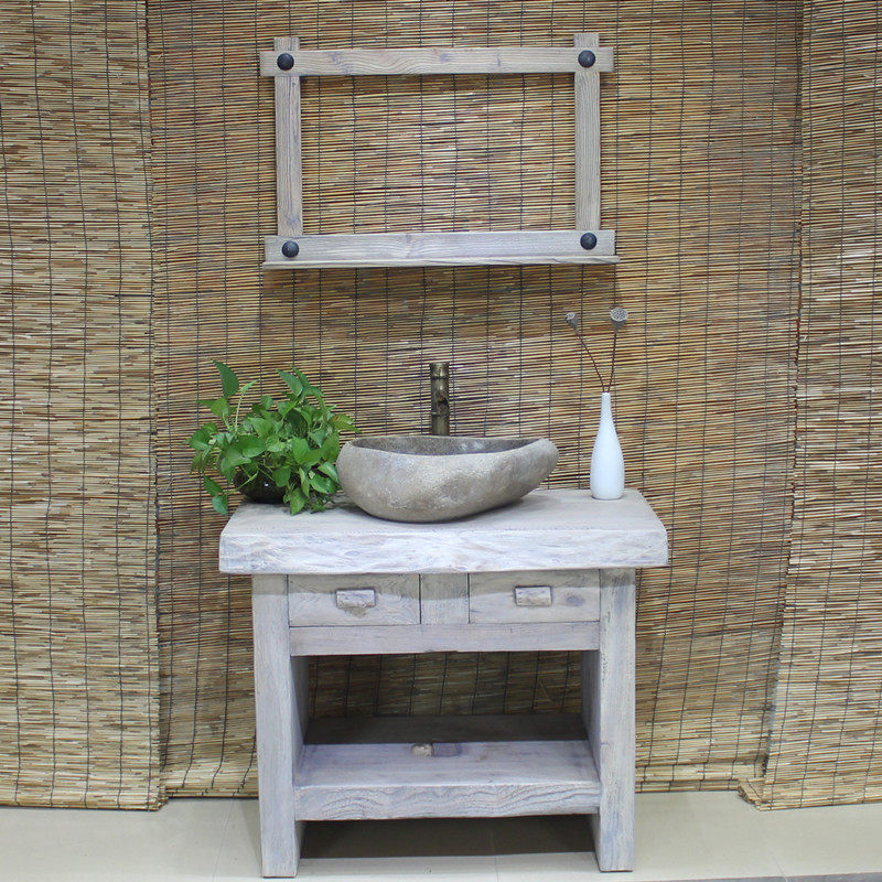 Сельский шкаф для ванной комнаты Комбинированность сплошной деревянной комнаты для ванны, посадочная туалетная туалетная туалет, мытья поверхность, мыть стол как старый верхний шкаф