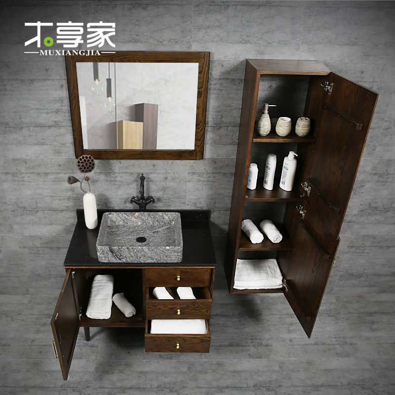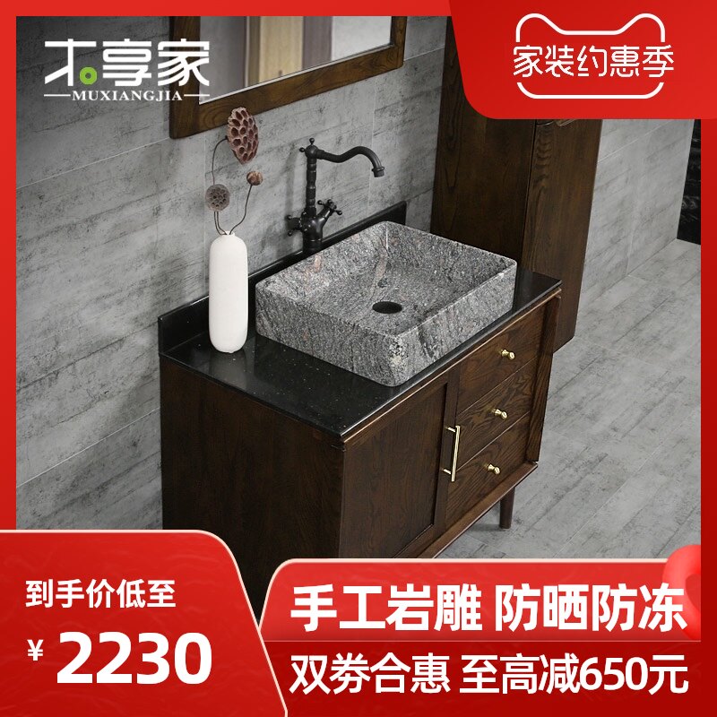 木享家 Новый китайский стиль ванной комнаты набор в ванной комнате красный дуб Мраморный мыть