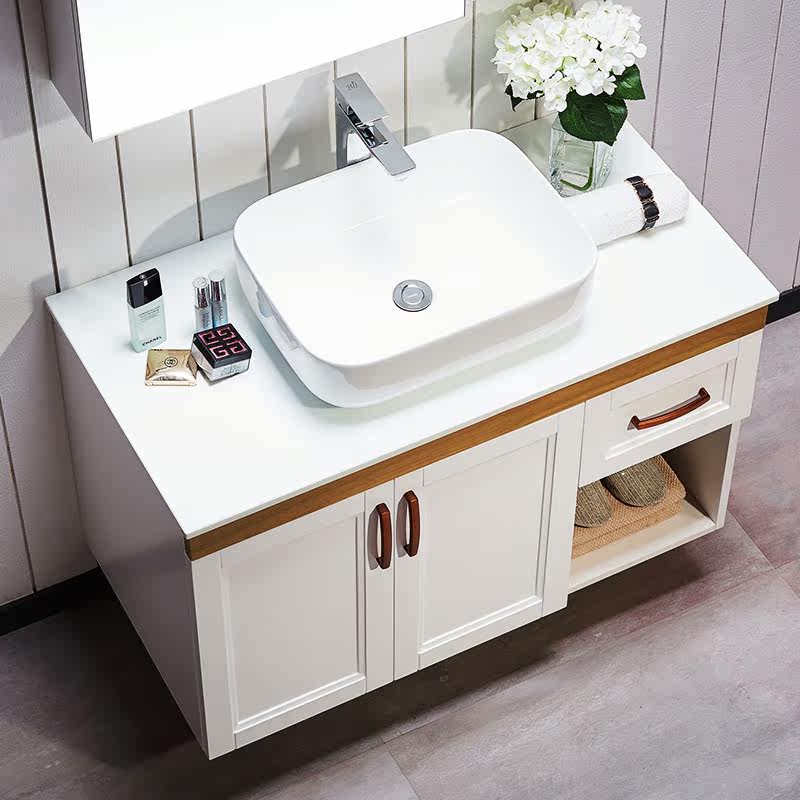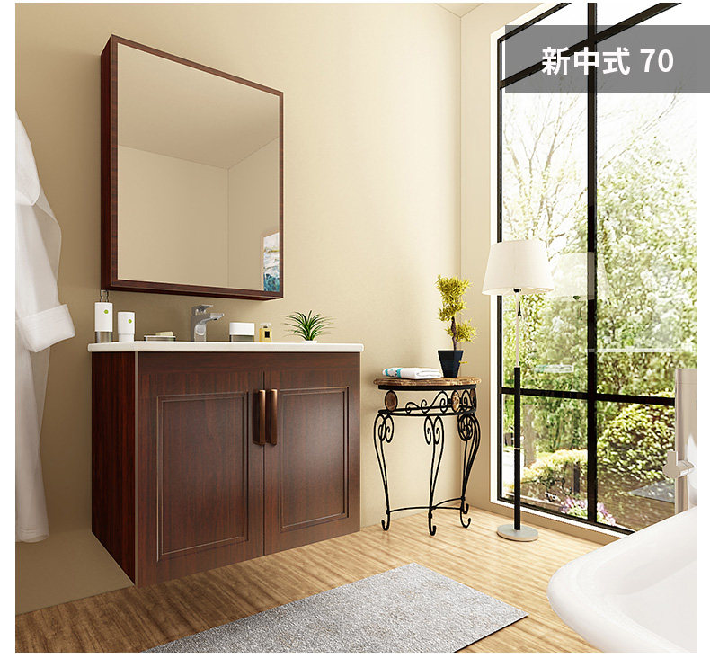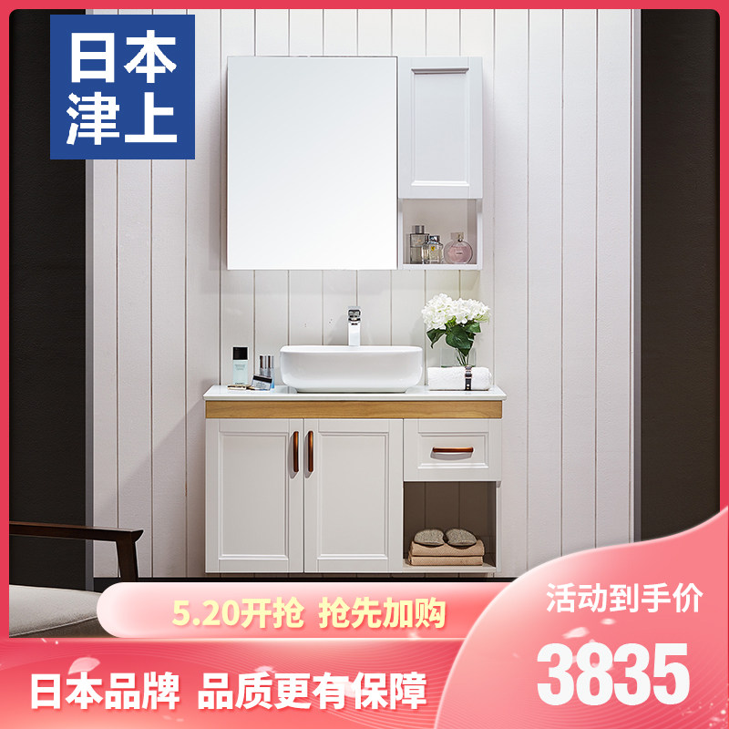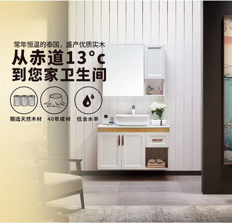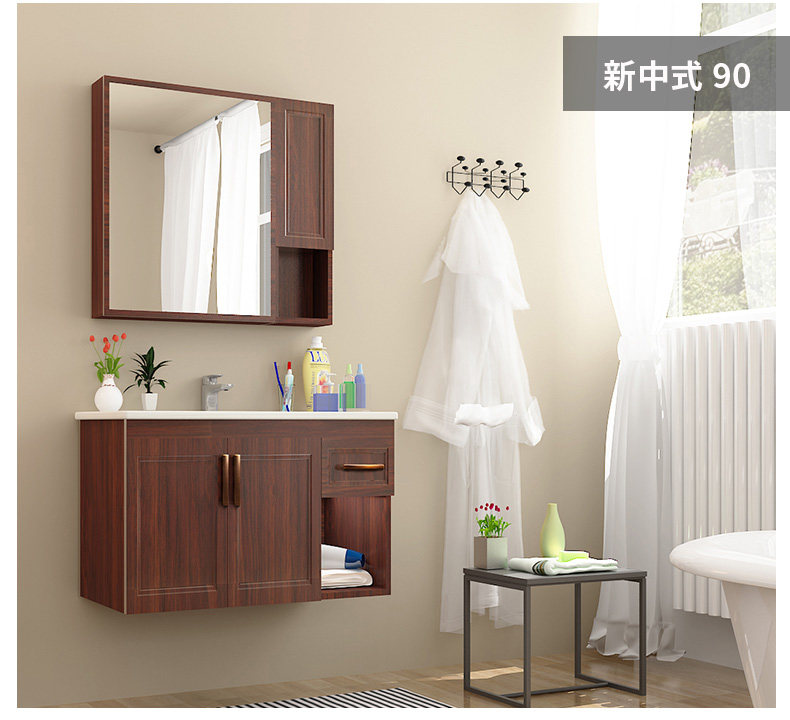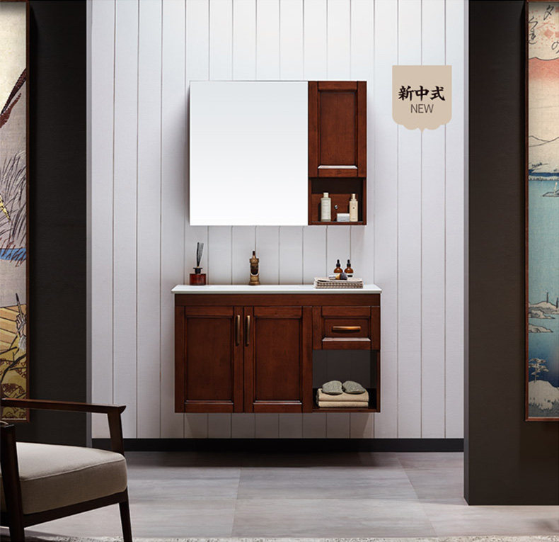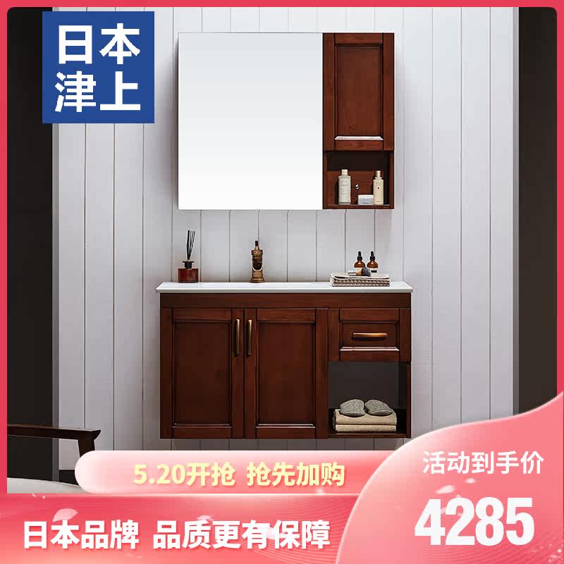 津上 Шкаф для ванной комнаты с твердым древесиной рукой -взорвать шкаф для лицевого шкафа для мытья шкаф современный китайский туалет с северной нордией.