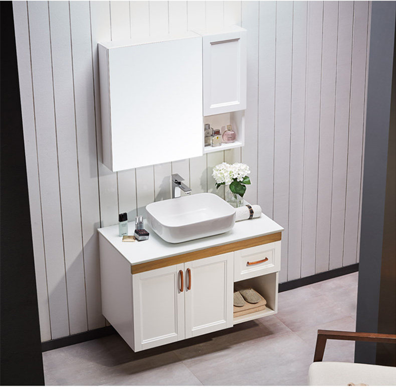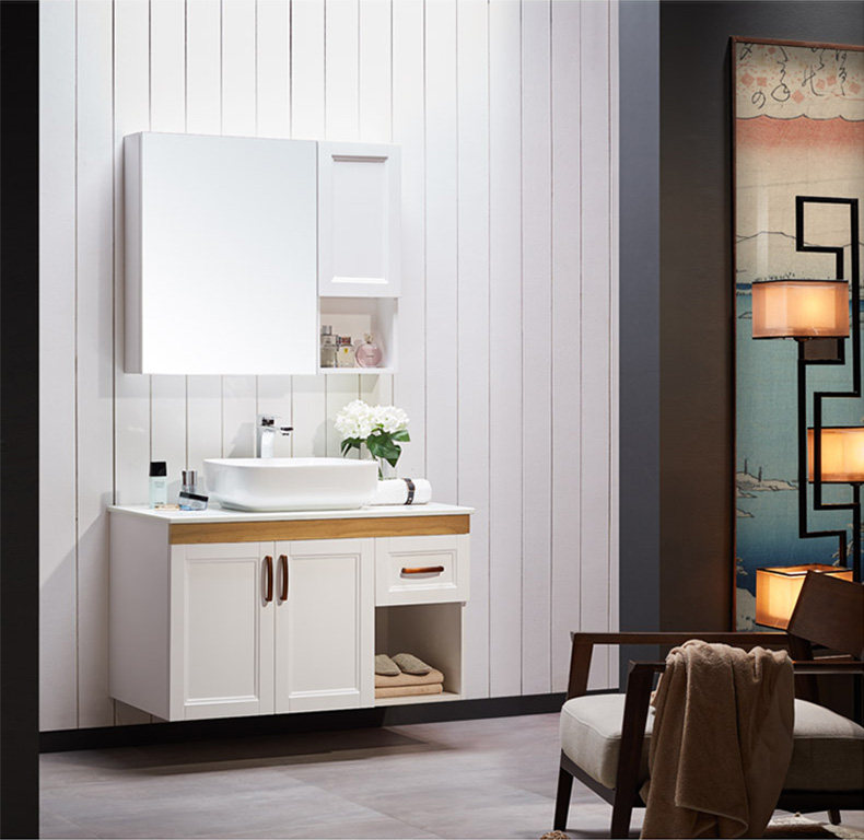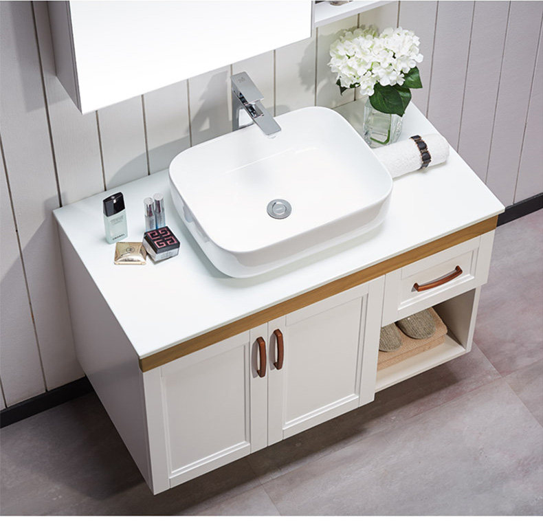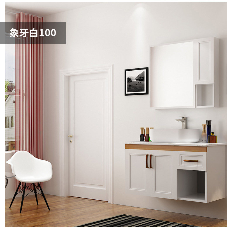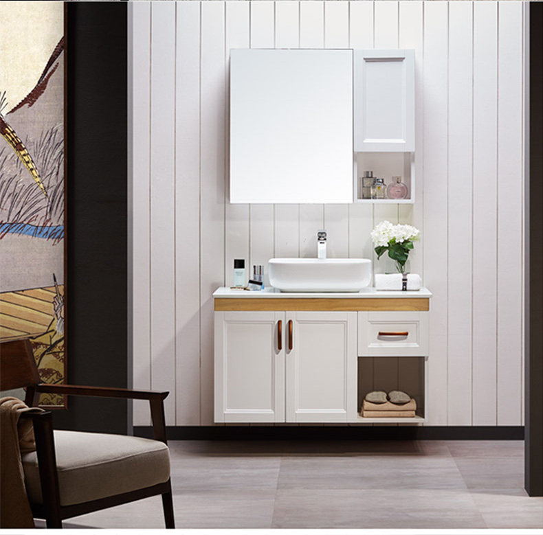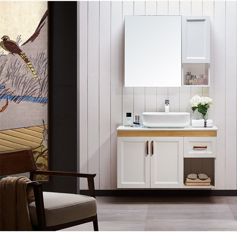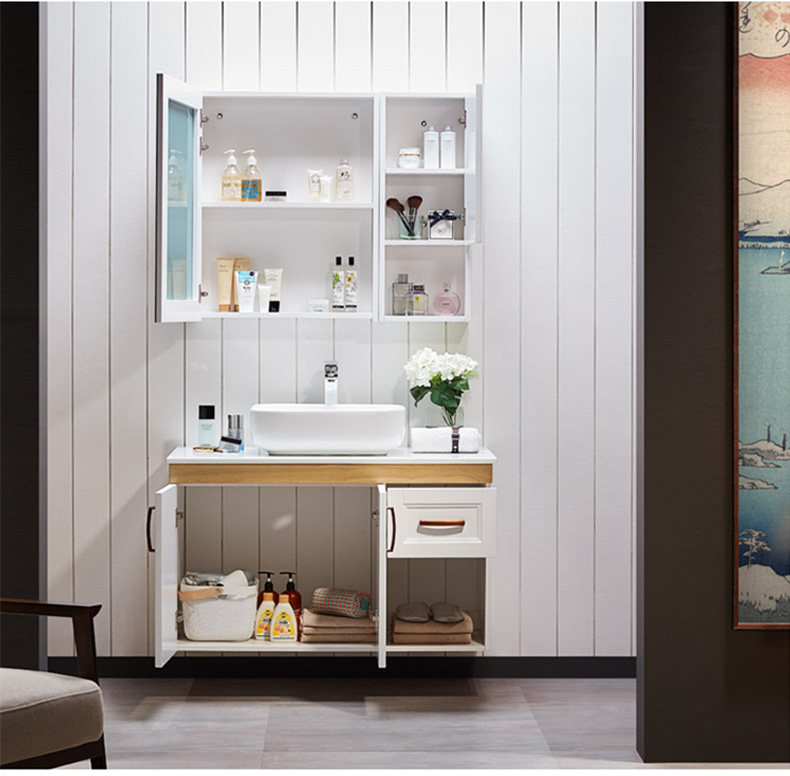 津上 Шкаф для ванной комнаты с твердым древесиной рукой -взорвать шкаф для лицевого шкафа для мытья шкаф современный китайский туалет с северной нордией.