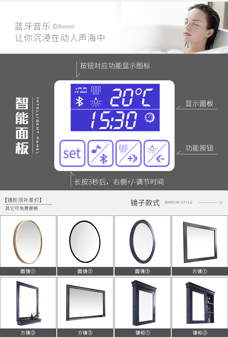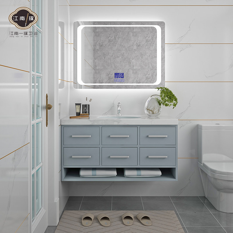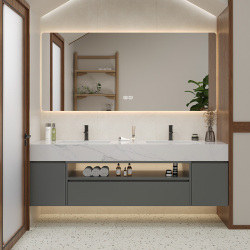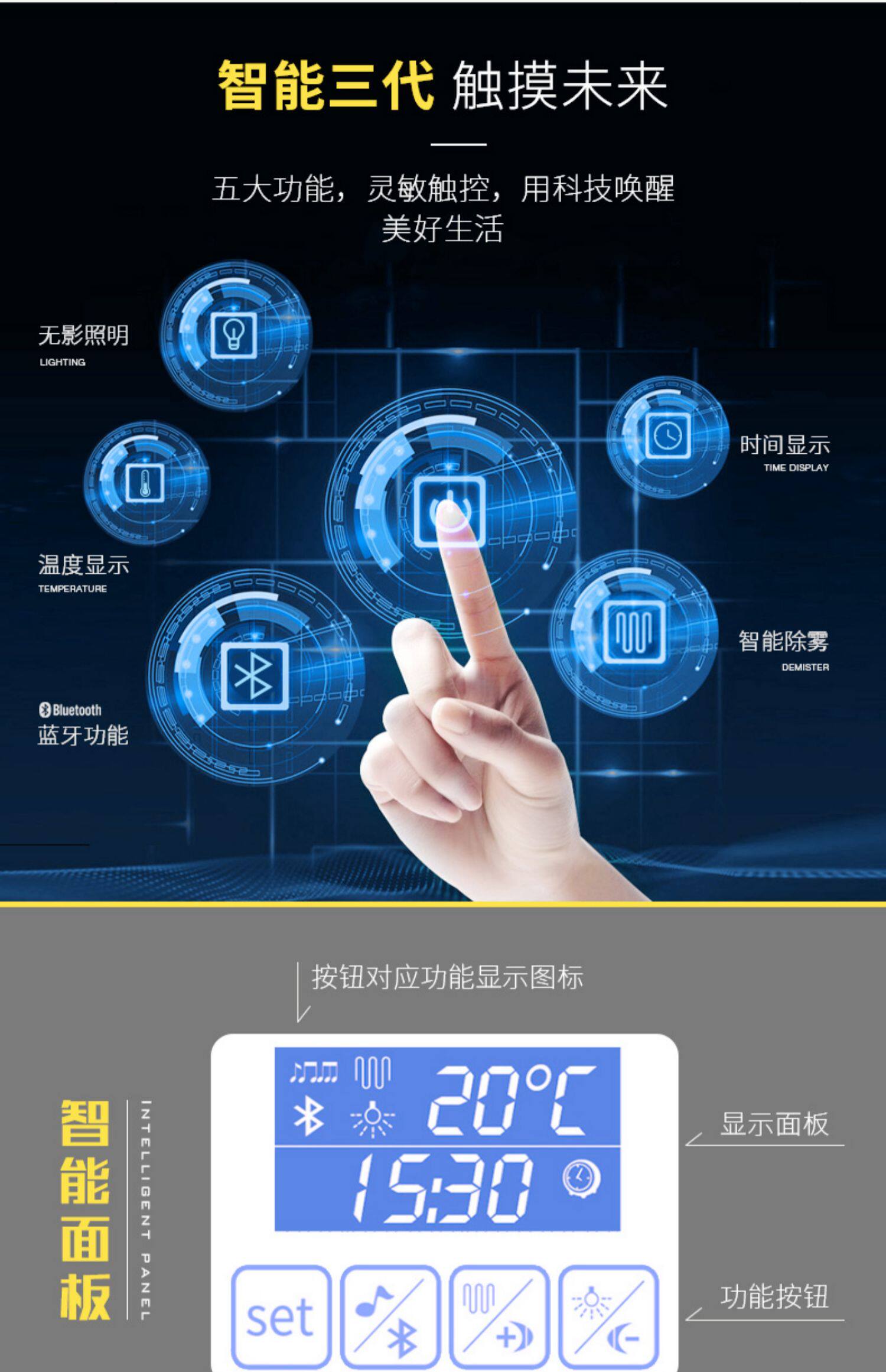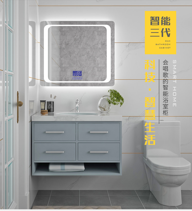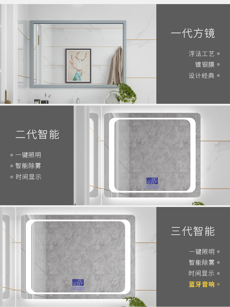 Интеллектуальное зеркало в ванной комнате Комбинированное дуб современный минималистский стиль на стене.