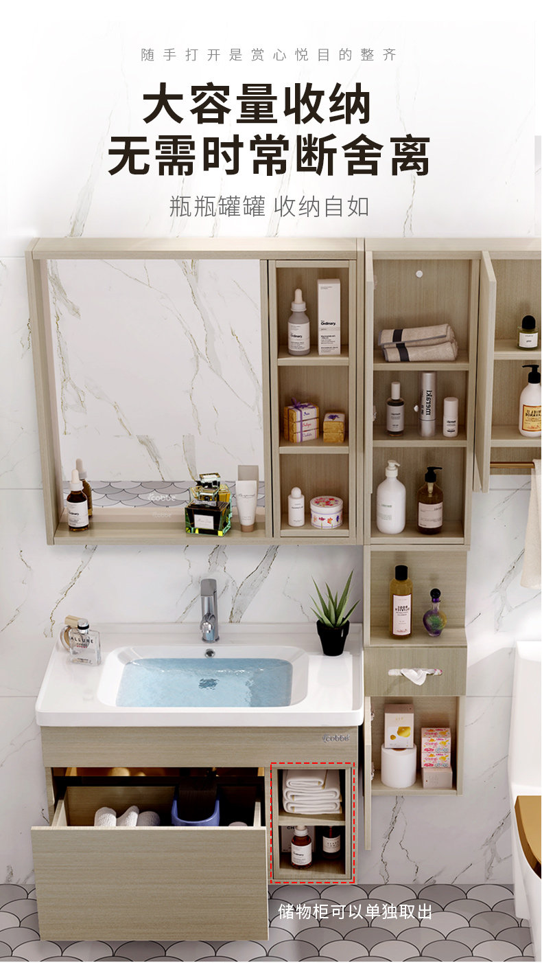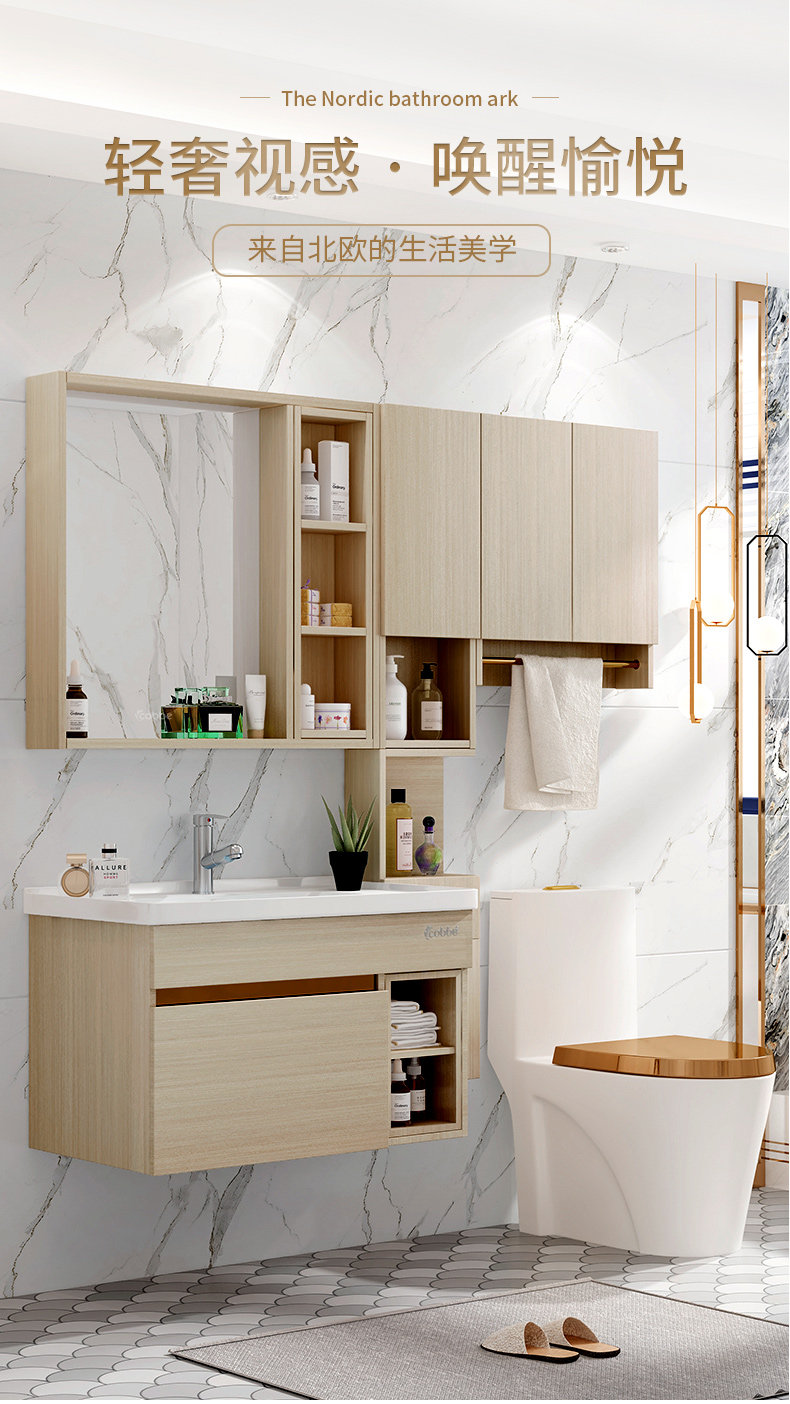 Carba Nordic Waby Шкаф с твердым деревом туалет туалет, мыть бассейн Комбинация лица Современное минималистское зеркало