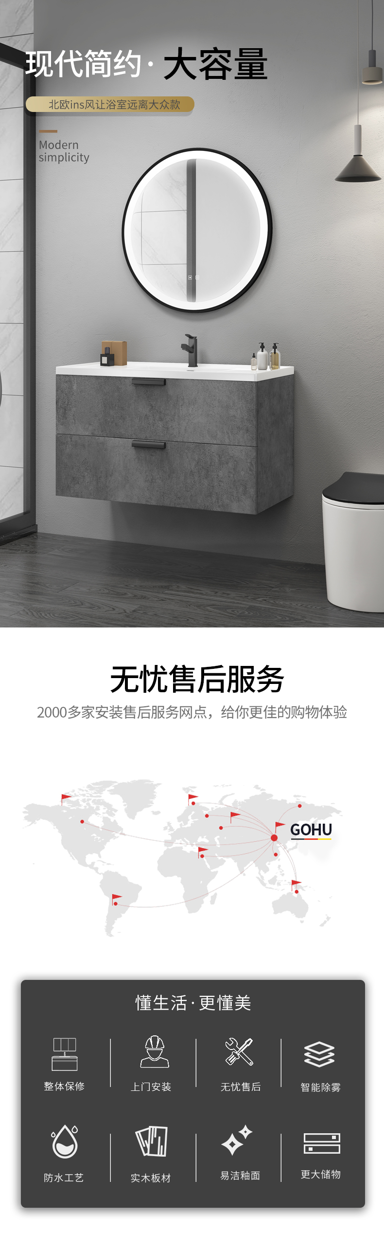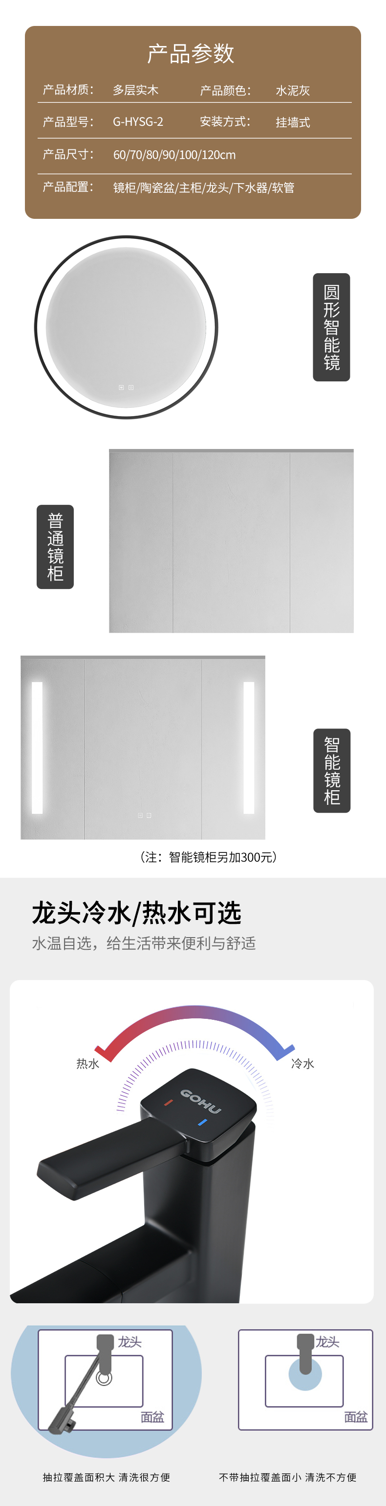 - 80 см [квадратный умный зеркальный шкаф] Установка пакета
