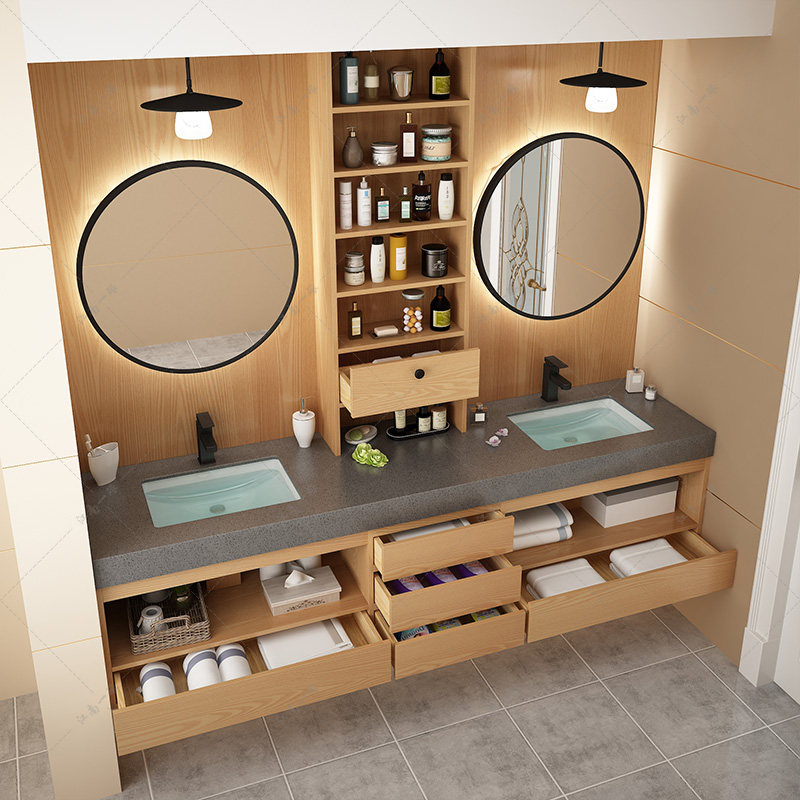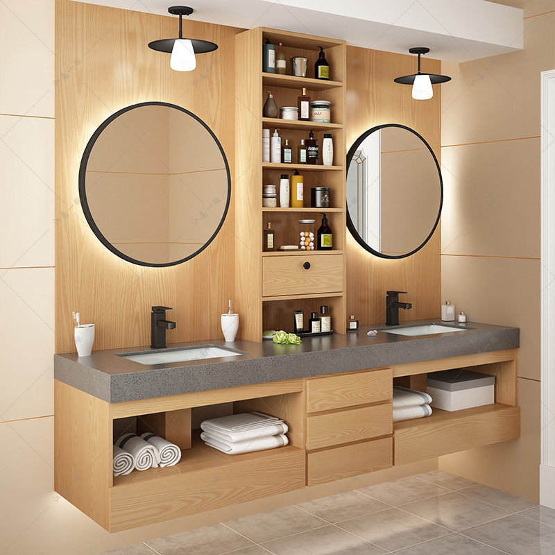Шкаф для ванной комнаты в японском стиле современный легкий роскошный твердый дерево ванная комната двойной бассейн
