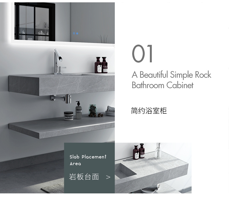 Рок -тарелка все -в одном шкафу для ванной комнаты.