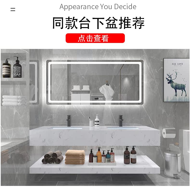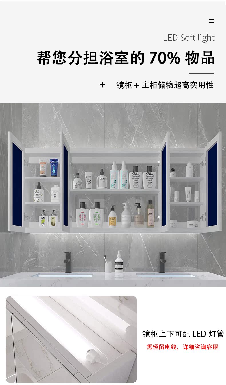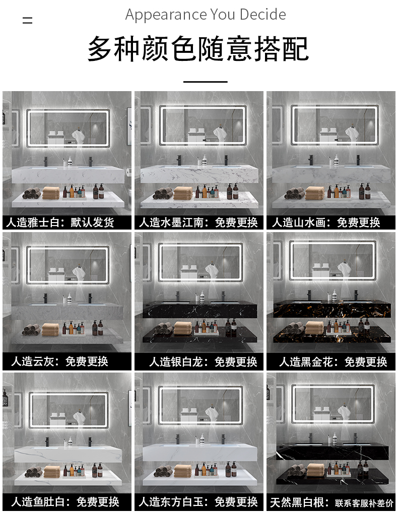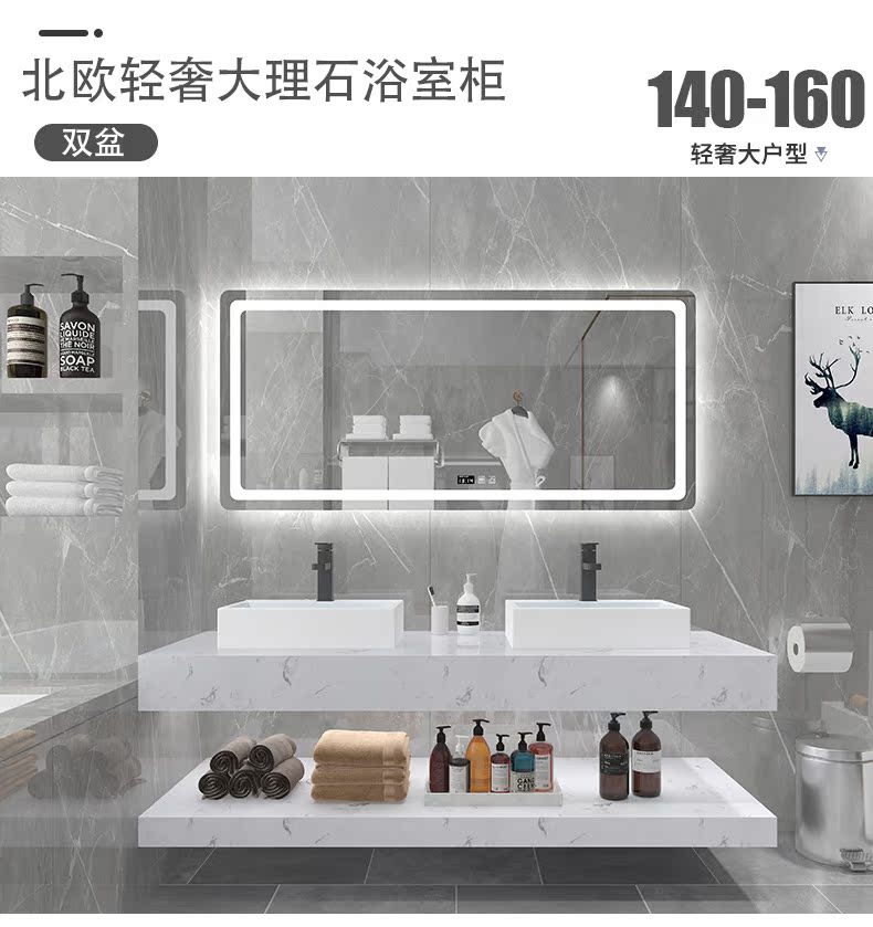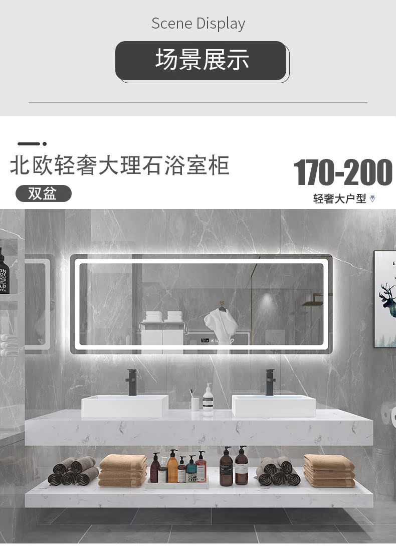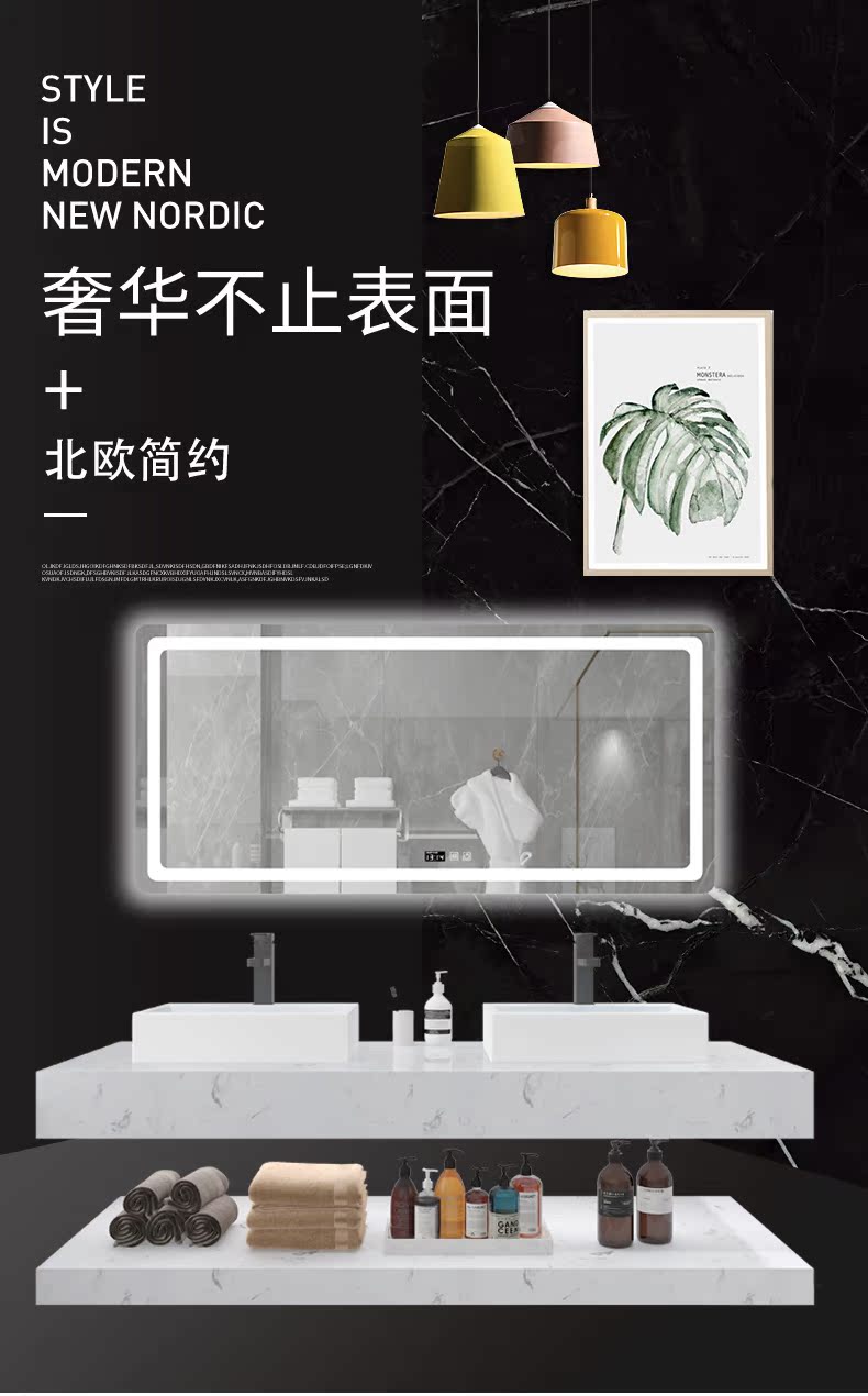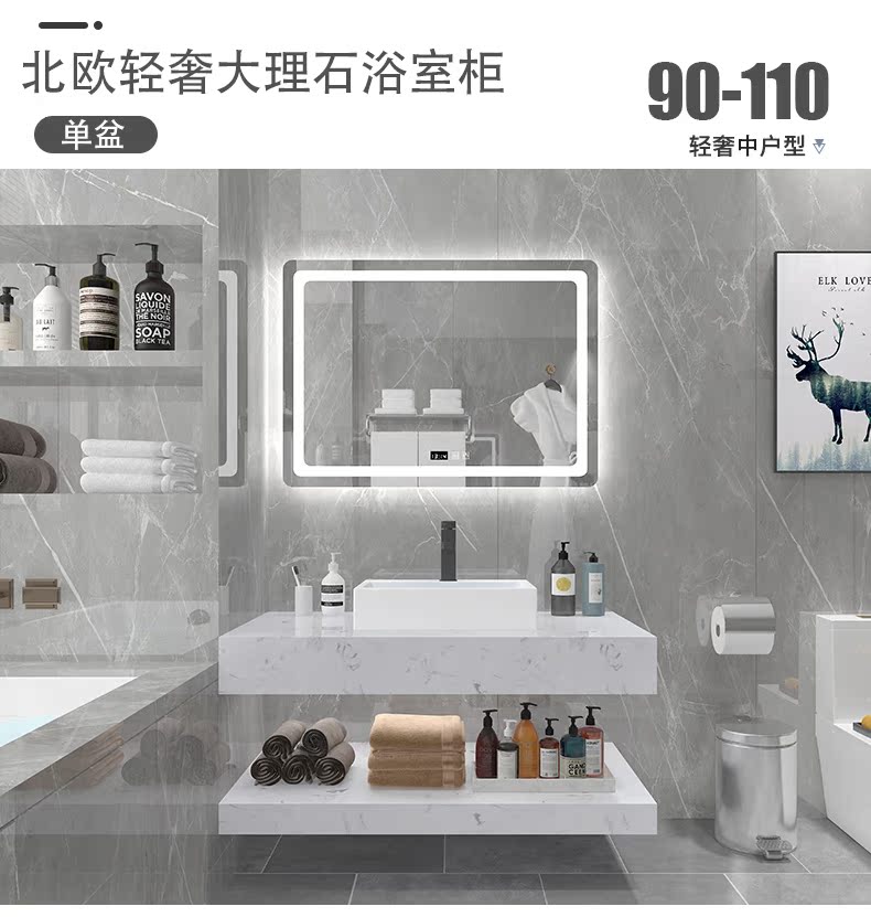 Мраморная шкаф для ванной комнаты Комбинация интеллектуальная световая роскошная современная минималистская минималистская порча