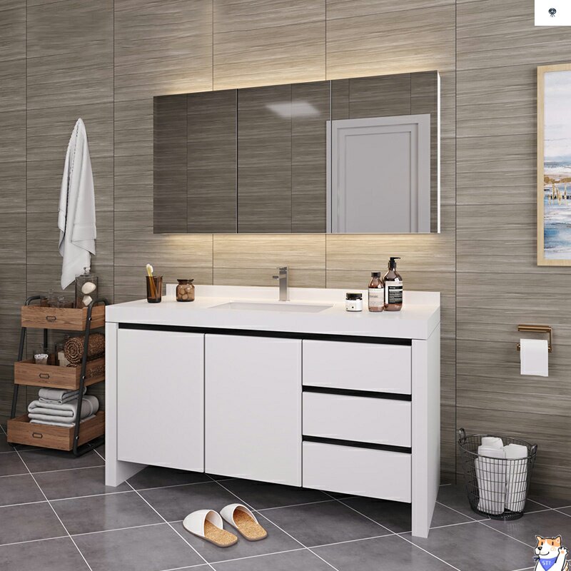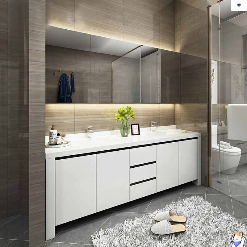 Северный шкаф для ванной комнаты сочетание двойной горшки с твердым деревом Luxury Tuxury Modern минималистский туалет туалет ванной комнаты, вымыть лицевой шкаф