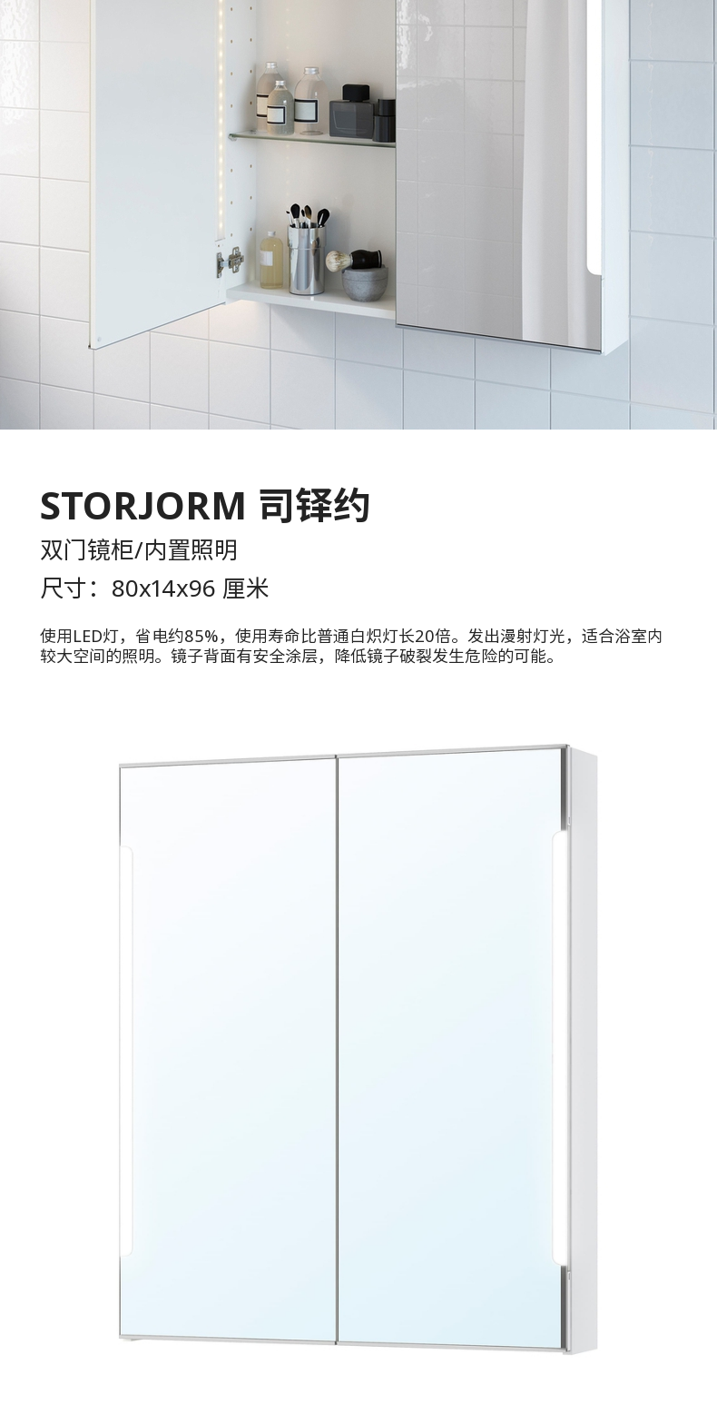 Ikea Ikea Storjorm Priest Yue Shuangdang Mirror Cabinet, построенный -в слепых современных нордических зеркальных коробках со светодиодными фонарями