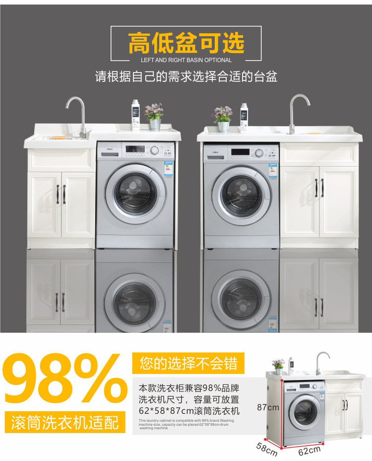 Космический алюминиевый шкаф для стиральной машины, балкон -бассейн, в сочетании с партнером по роллеру, настраиваемый