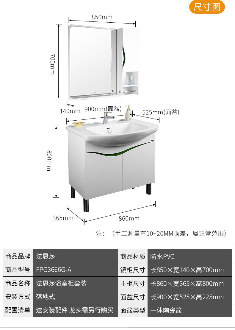 Farnesha FPG3666G High -End PVC White Light 900 Size Size Шкаф