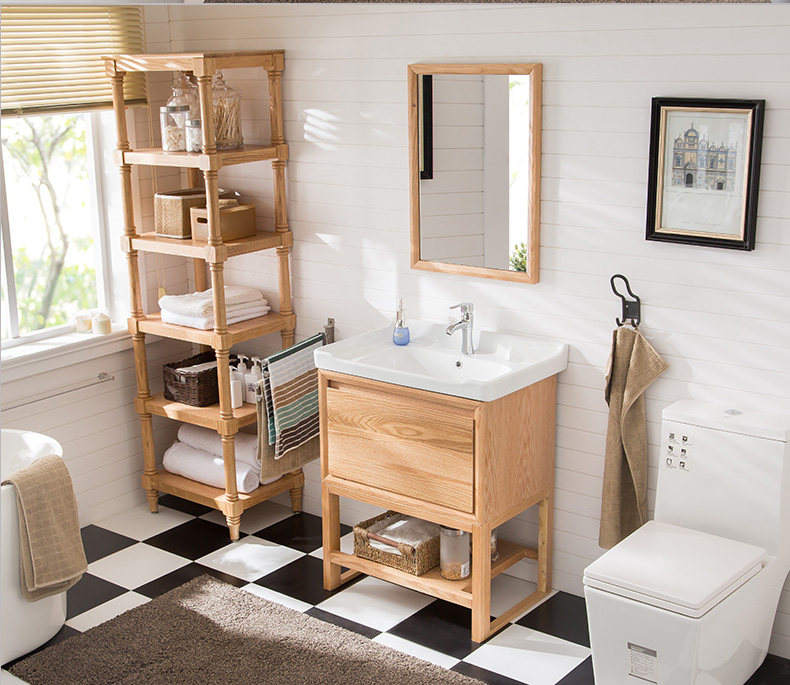 Северная простой лесной дерево ванная комната Комбинация маленькая квартира туалет, на полу -разделите, мыть