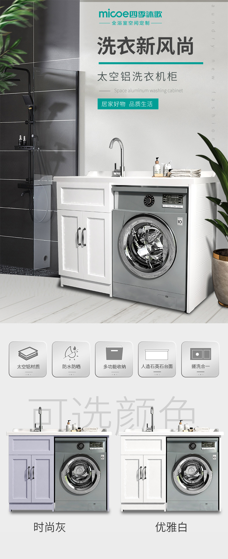 四季沐歌 Космический алюминиевый шкаф для прачечной с одному звенам параллельному таблетовому шкафу, балкон -ванной шкаф