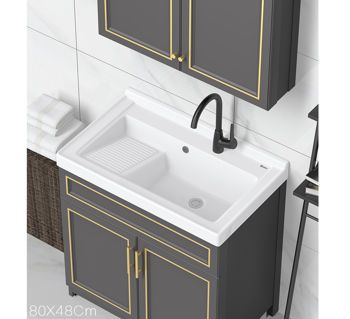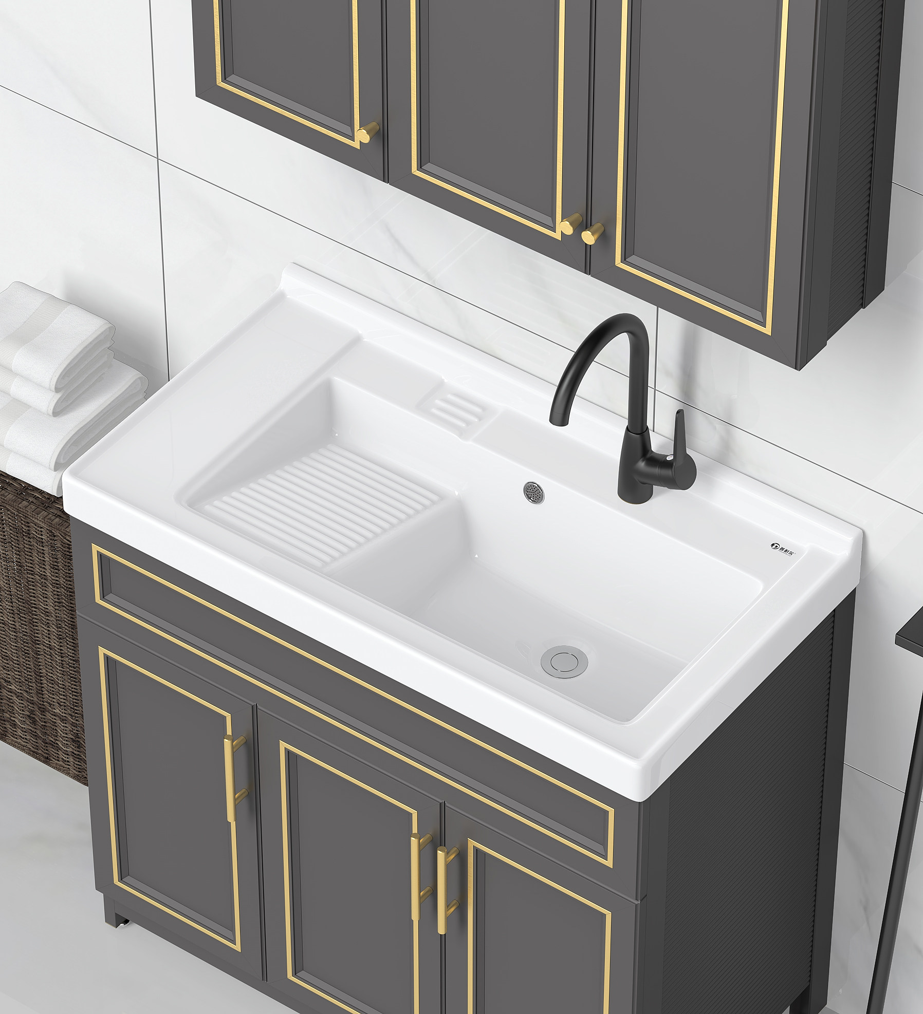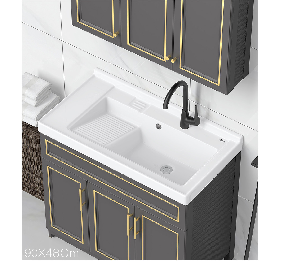 Purnell балконное пространство алюминиевый напольный комбинированный шкаф для стирки встроенная керамическая раковина для стирки со стиральной доской бассейн для стирки
