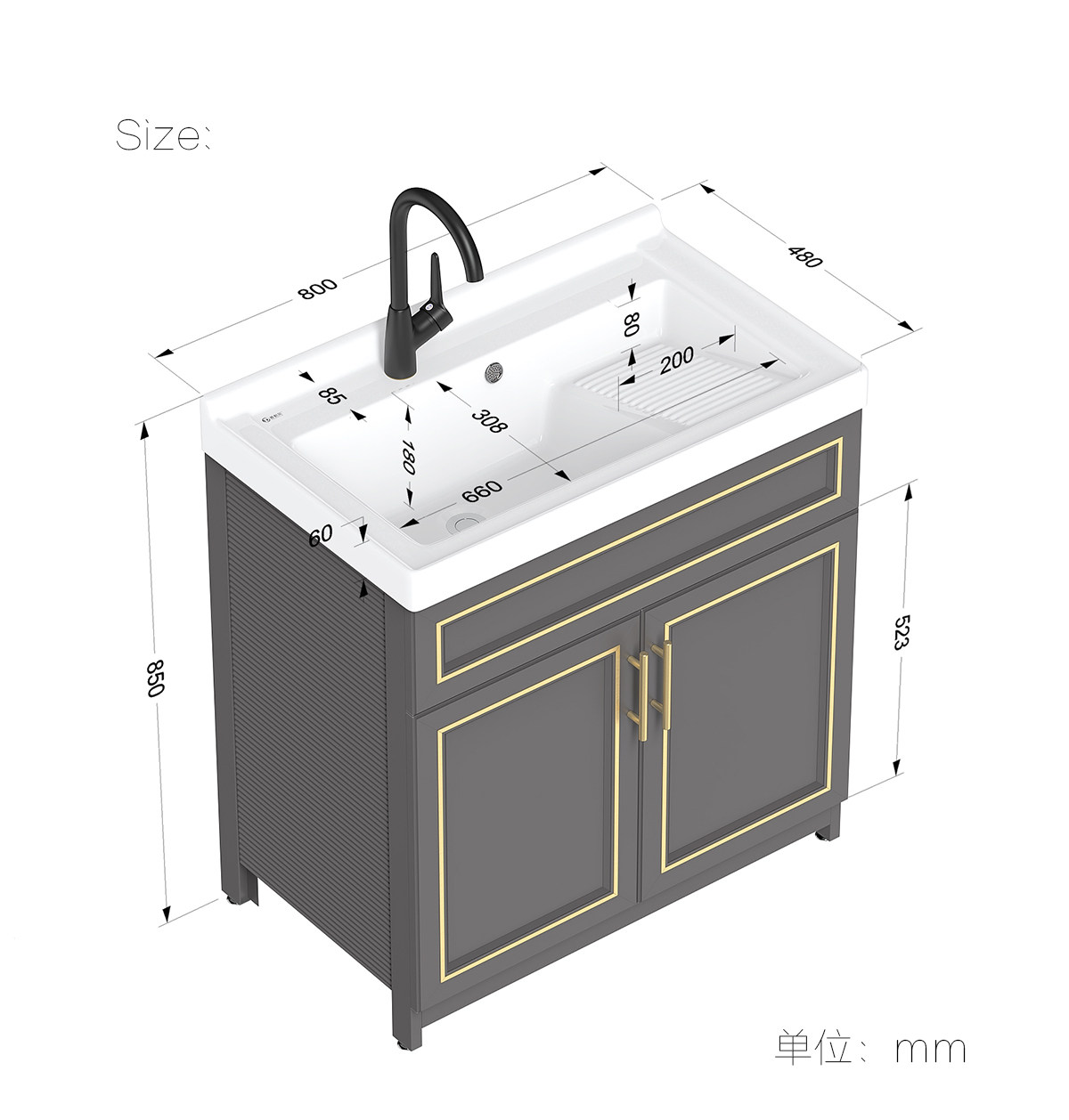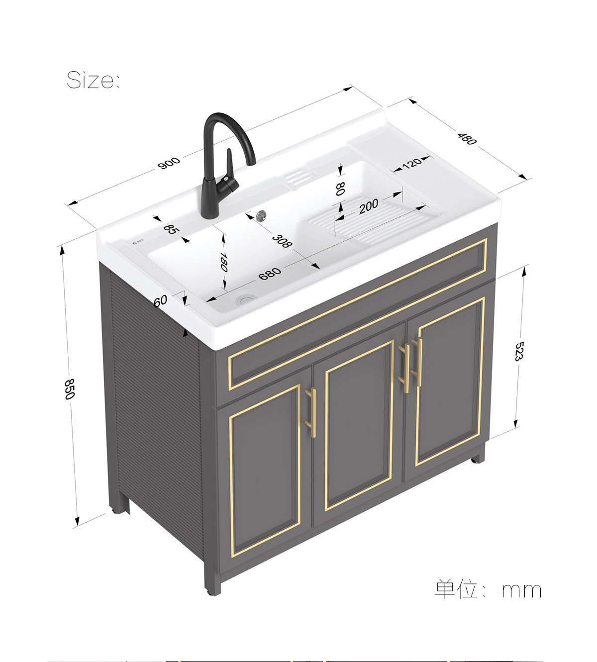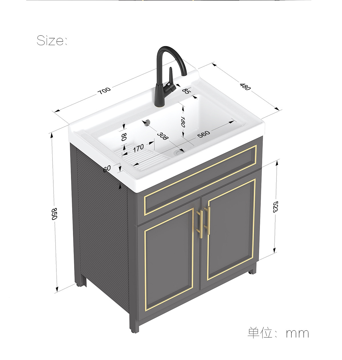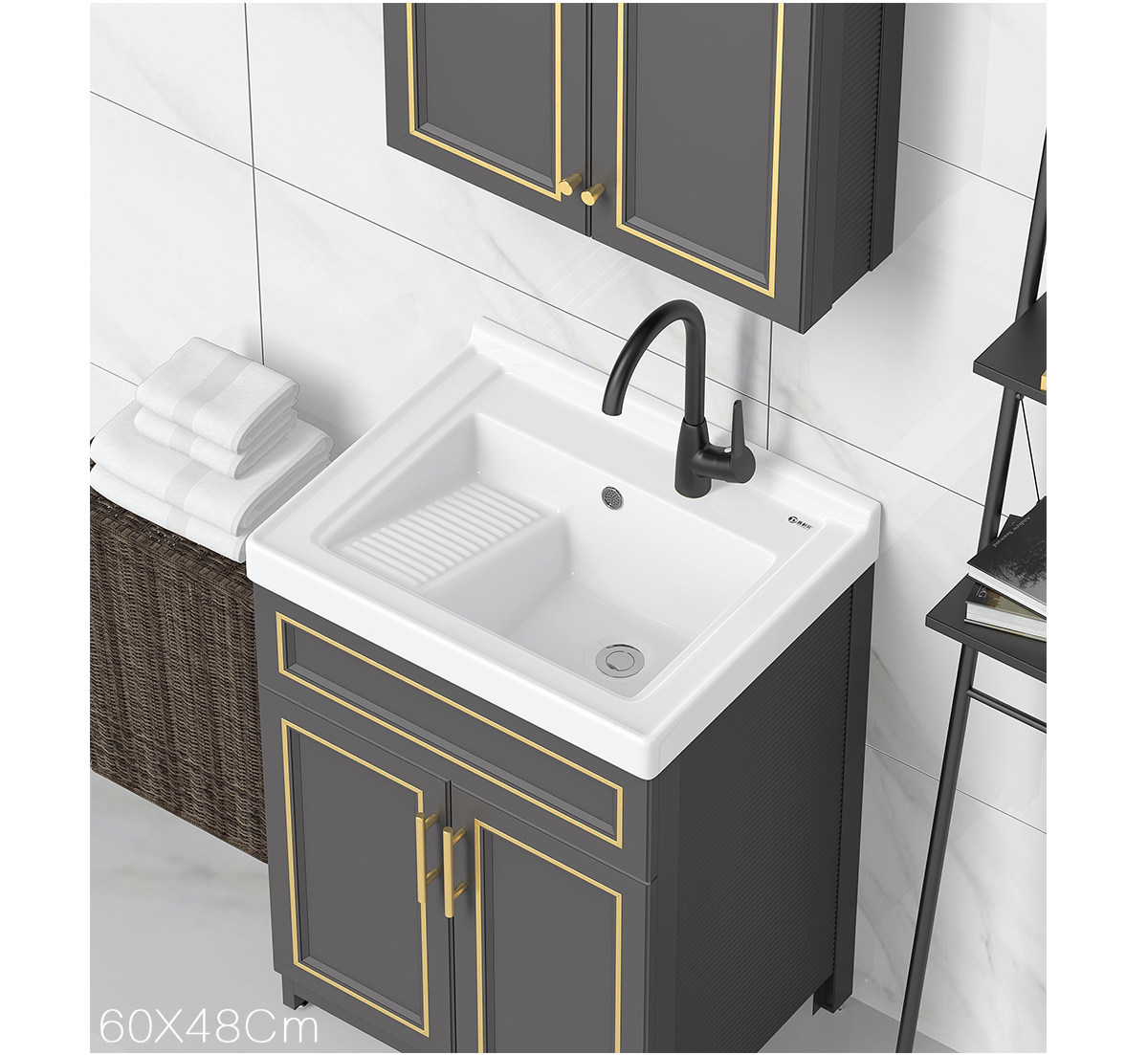 Purnell балконное пространство алюминиевый напольный комбинированный шкаф для стирки встроенная керамическая раковина для стирки со стиральной доской бассейн для стирки