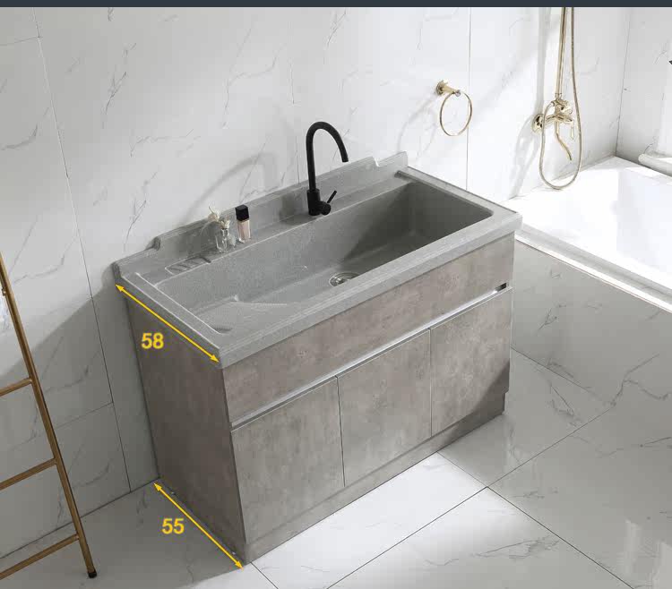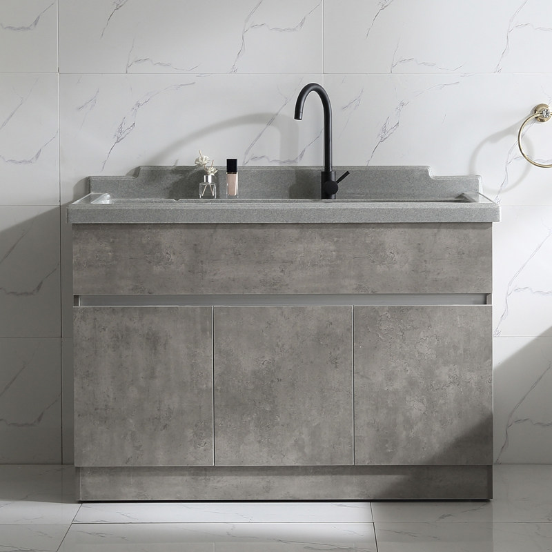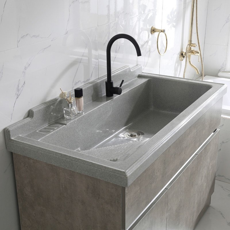Скандинавский многослойный шкаф для стирки из цельного дерева, большая ванна для стирки бассейна, искусственный кварцевый камень с наклонной стиральной доской, углубление бассейна для стирки
