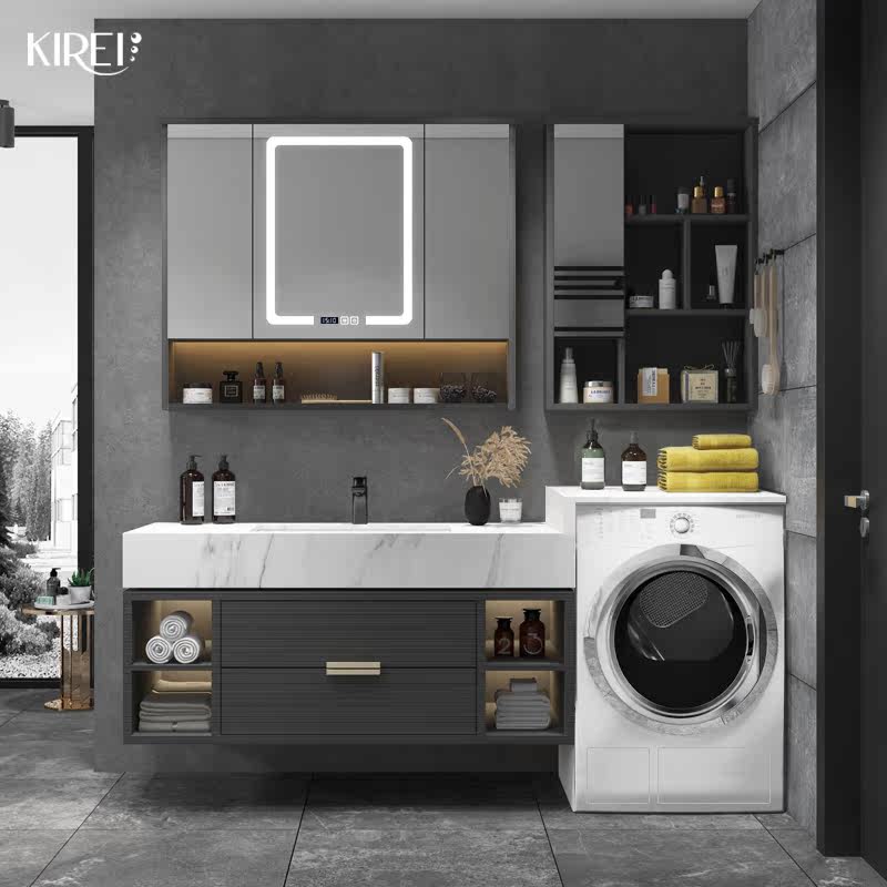 Мытье шкафа для лица встроенная комбинация ванной комнаты скандинавской минималистской минималистской ручной комбинации в ванной комнате