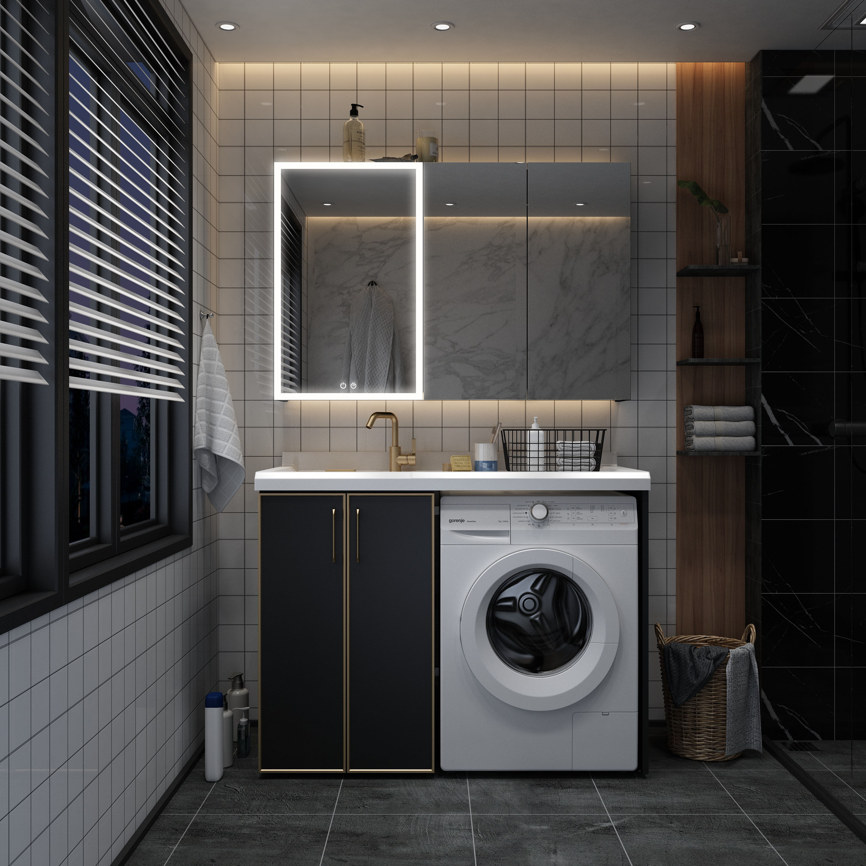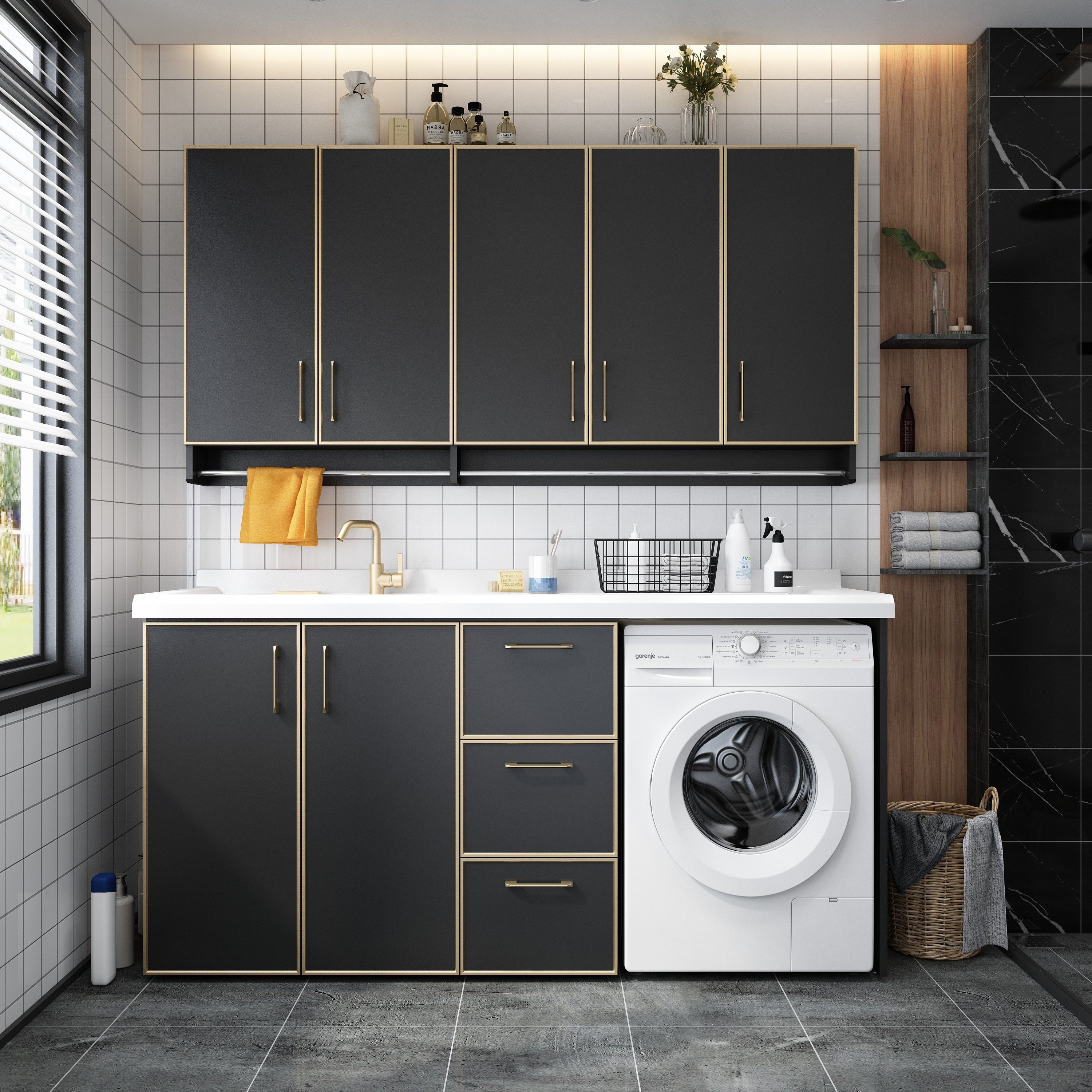 九莱 Космический алюминиевый шкаф для стирки балкона с промывкой для мытья тарелка для стиральной машины пруд