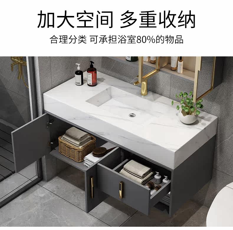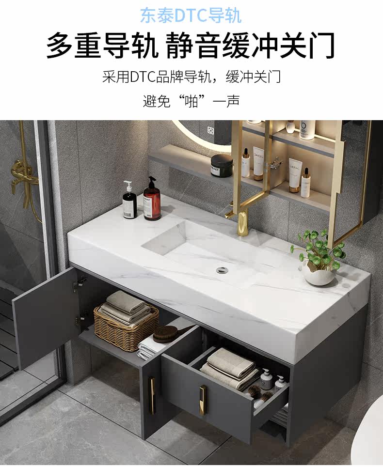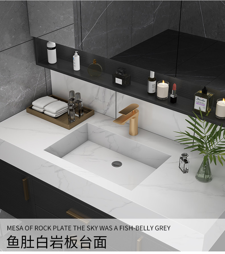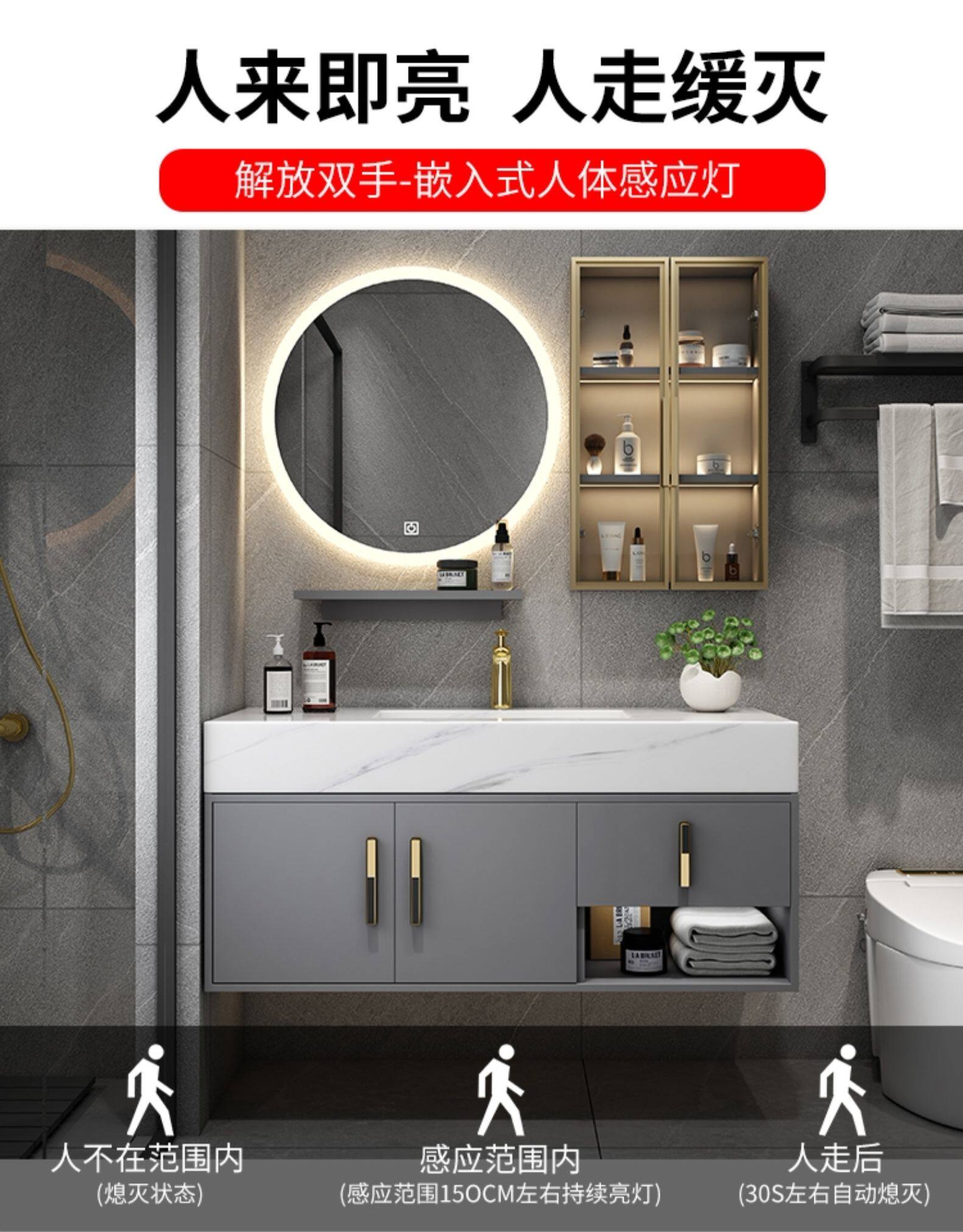 Шкаф для ванной комнаты современный легкий роскошный роскошный рок -тарелки -в одном умывальнике фасадный шкаф для туалетного стола висят на стене туалет