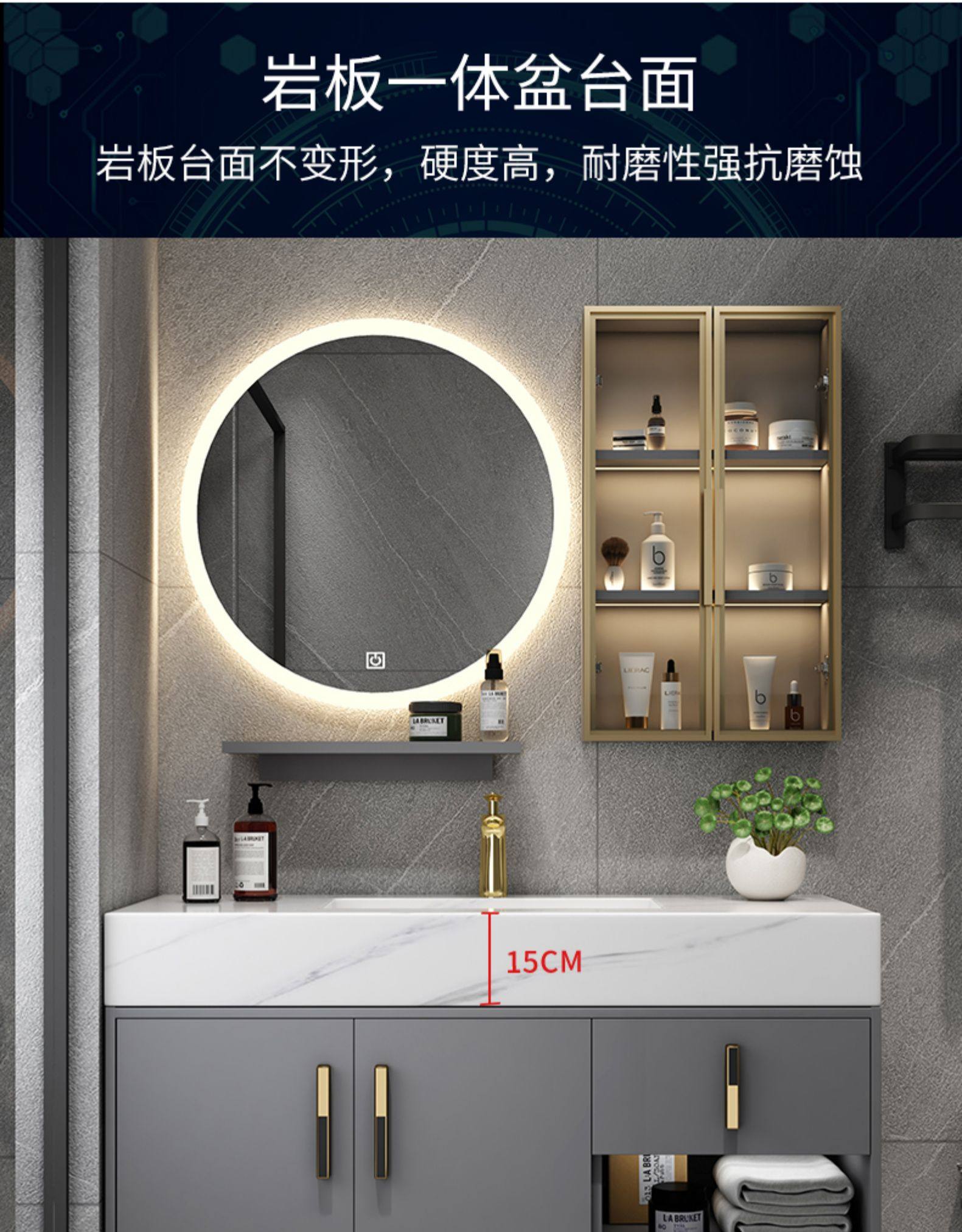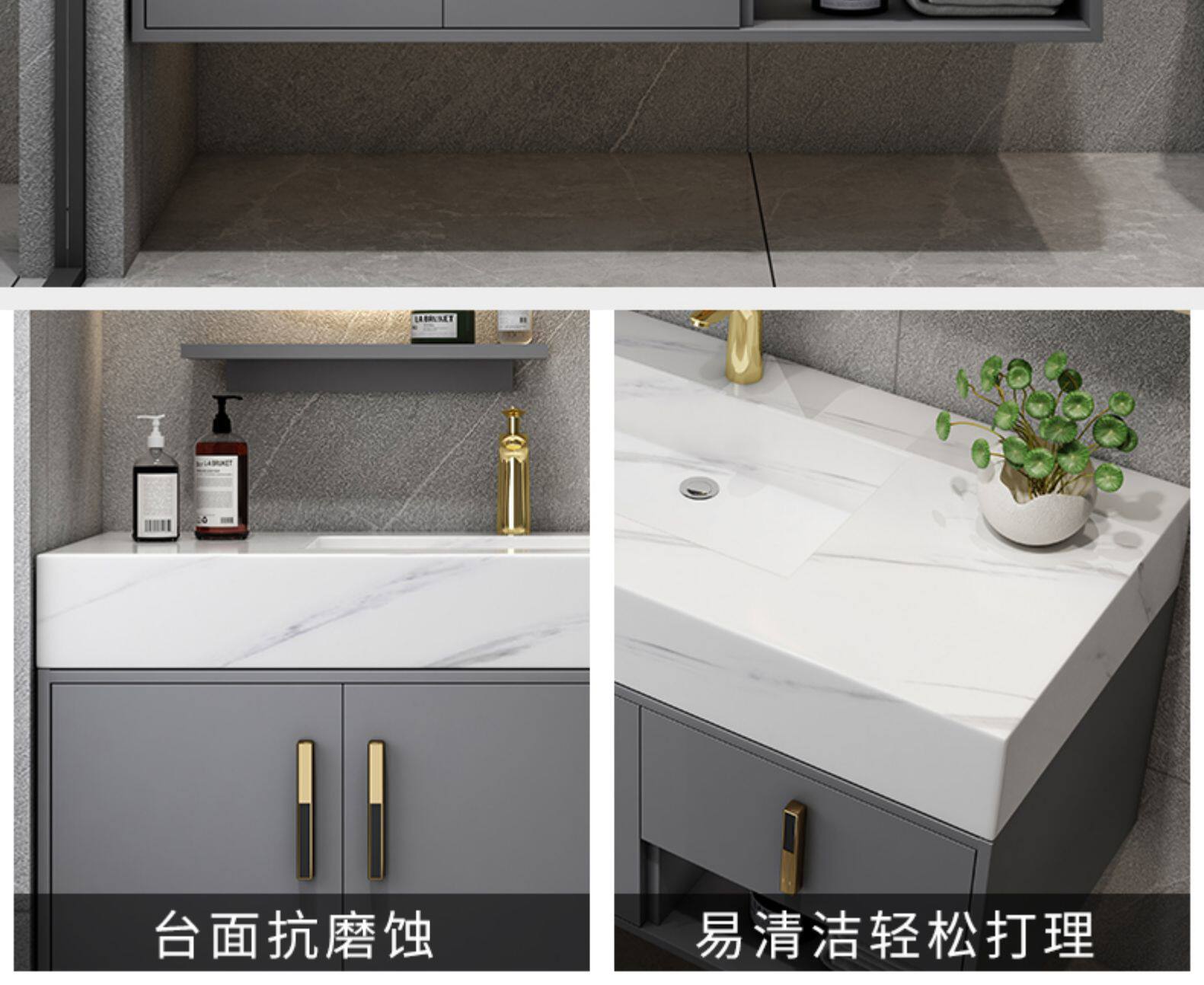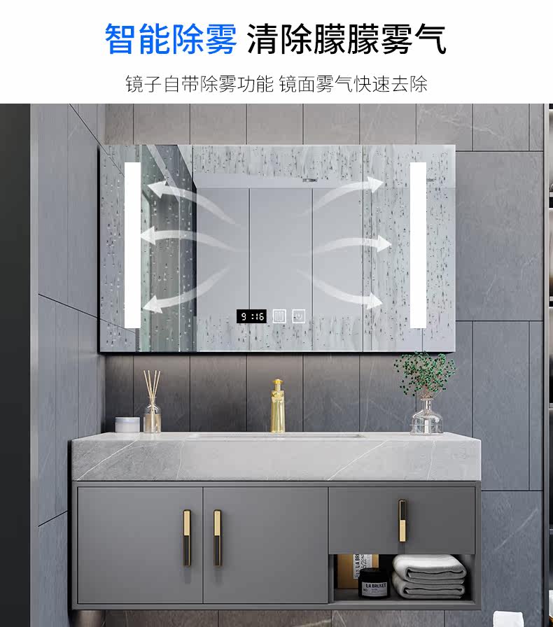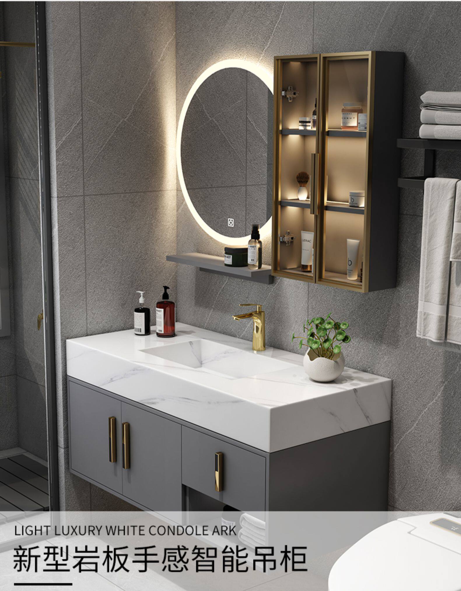 Шкаф для ванной комнаты современный легкий роскошный роскошный рок -тарелки -в одном умывальнике фасадный шкаф для туалетного стола висят на стене туалет