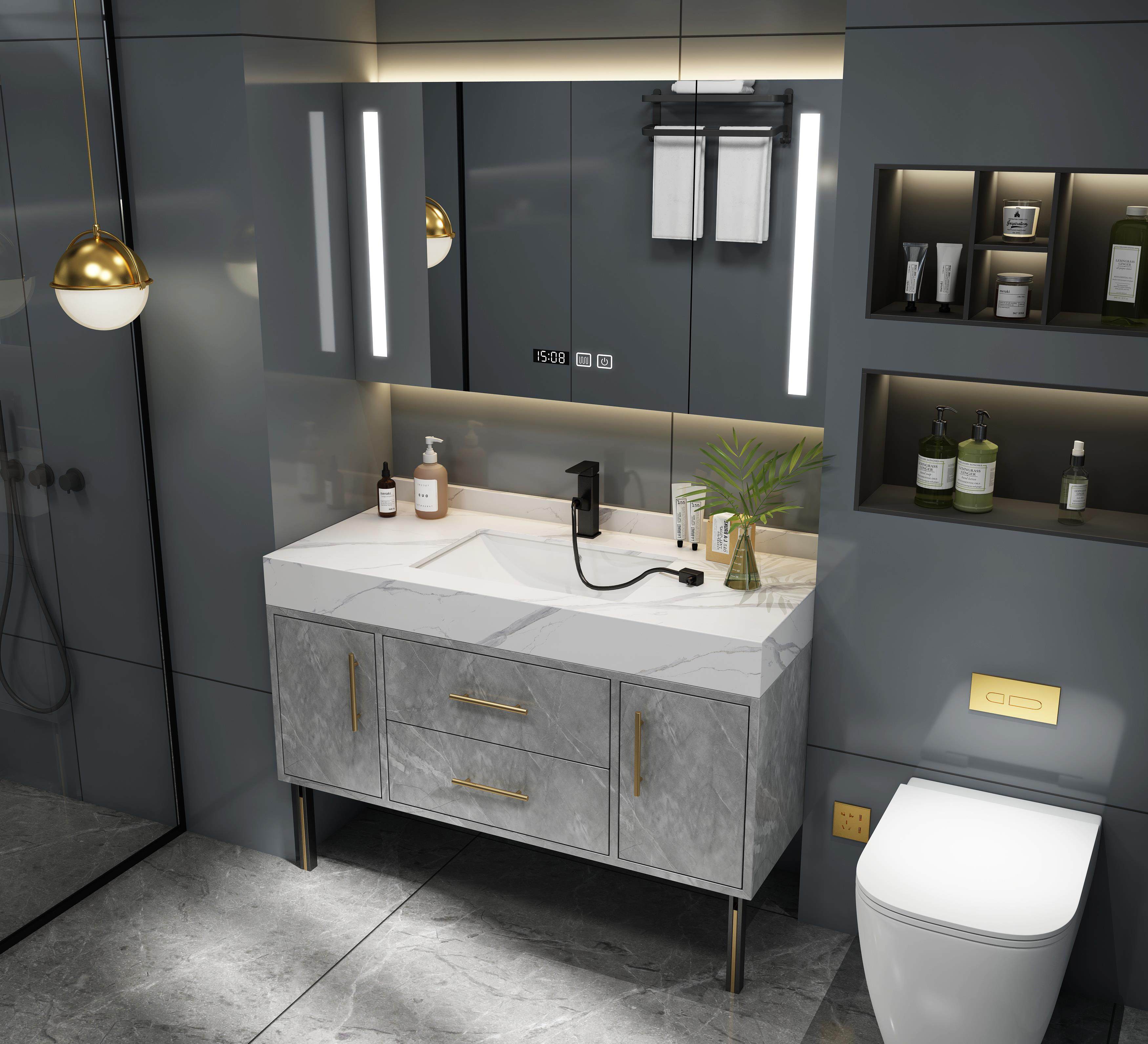 Мраморная ванная комната Комбинация интеллектуальная световая роскошная современная минималистская ручная стира